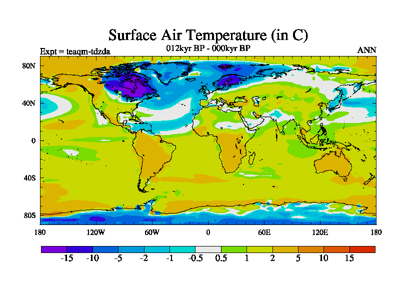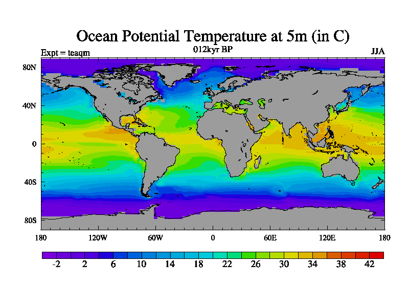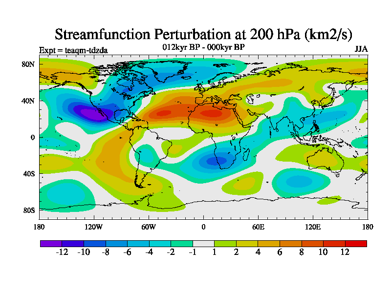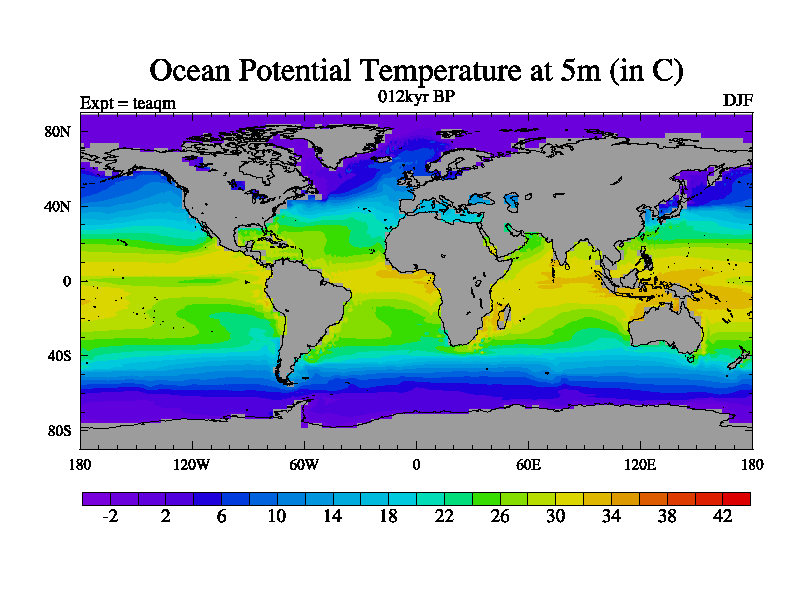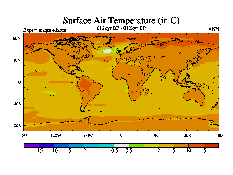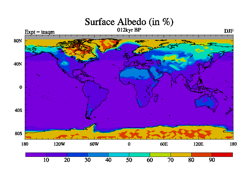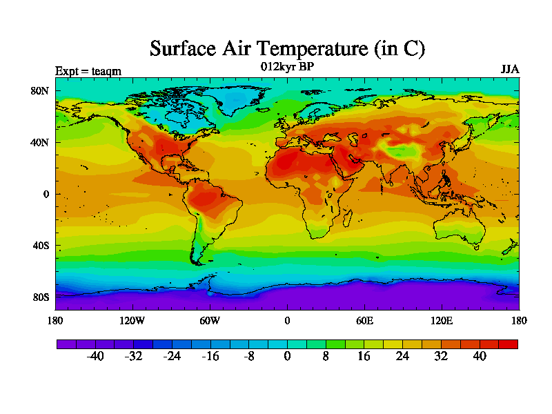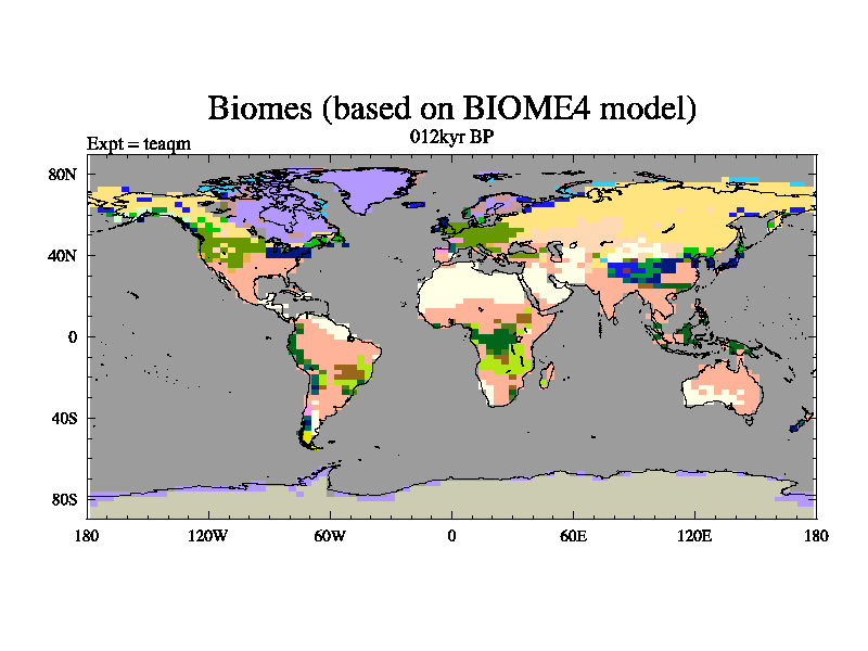 This is the 012kyr BP simulation for a new set of BBC runs using TRIFFID. Static mode, started from half way through tdxo set of simulations (new BBC static TRIFFID runs). This version includes the dark_respiration update. Vegetation is from the pre-industrial run tdwza, and CO2 is quadrupled over tdxo version.