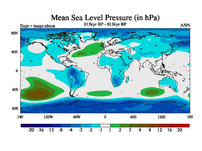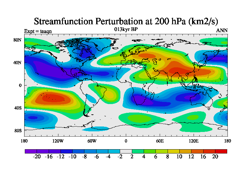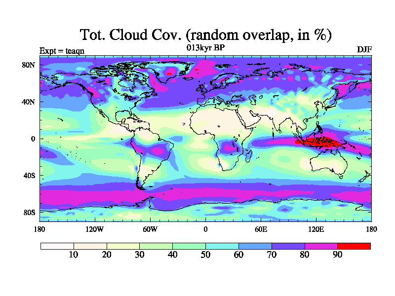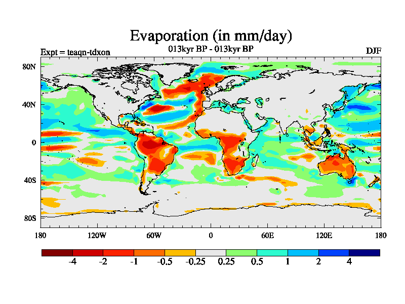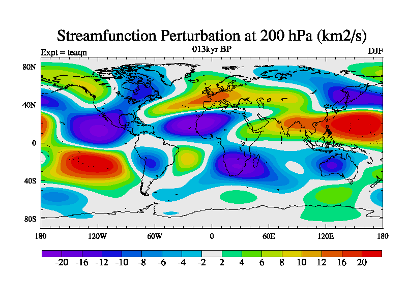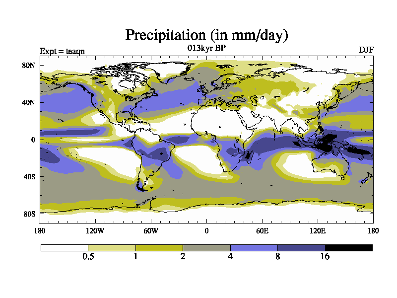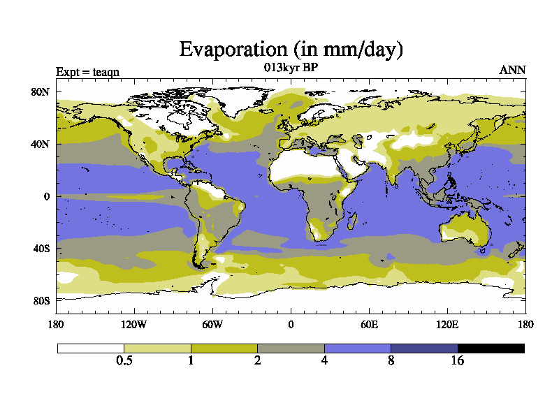 This is the 013kyr BP simulation for a new set of BBC runs using TRIFFID. Static mode, started from half way through tdxo set of simulations (new BBC static TRIFFID runs). This version includes the dark_respiration update. Vegetation is from the pre-industrial run tdwza, and CO2 is quadrupled over tdxo version.
