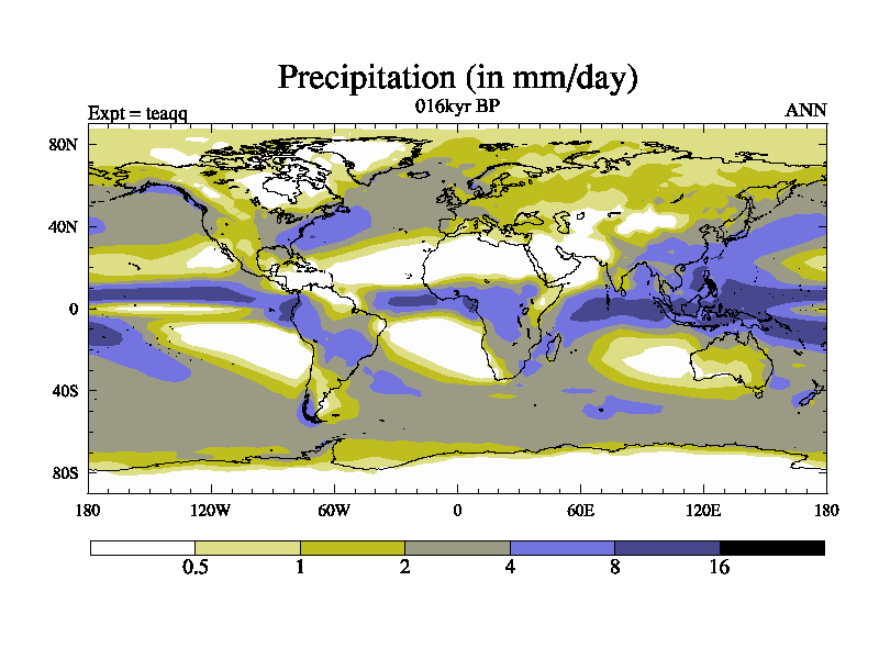 This is the 016kyr BP simulation for a new set of BBC runs using TRIFFID. Static mode, started from half way through tdxo set of simulations (new BBC static TRIFFID runs). This version includes the dark_respiration update. Vegetation is from the pre-industrial run tdwza, and CO2 is quadrupled over tdxo version.