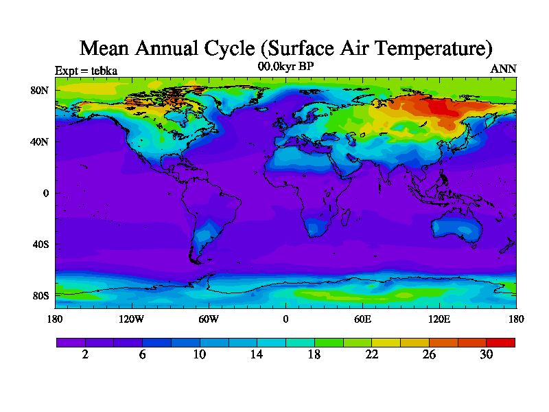 This is the 00.0 kyr BP simulation for a new set of deglaciation BBC runs using Peltier6g and TRIFFID. Dynamic mode