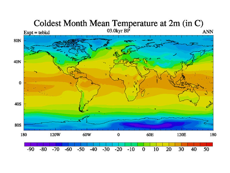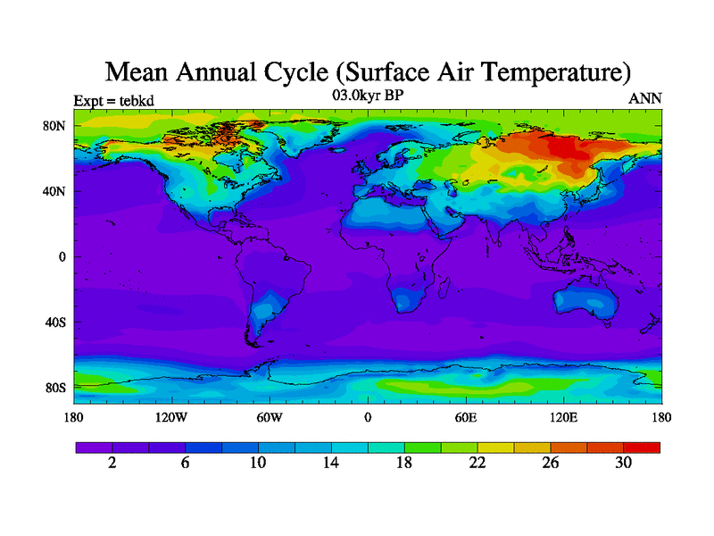 This is the 03.0 kyr BP simulation for a new set of deglaciation BBC runs using Peltier6g and TRIFFID. Dynamic mode