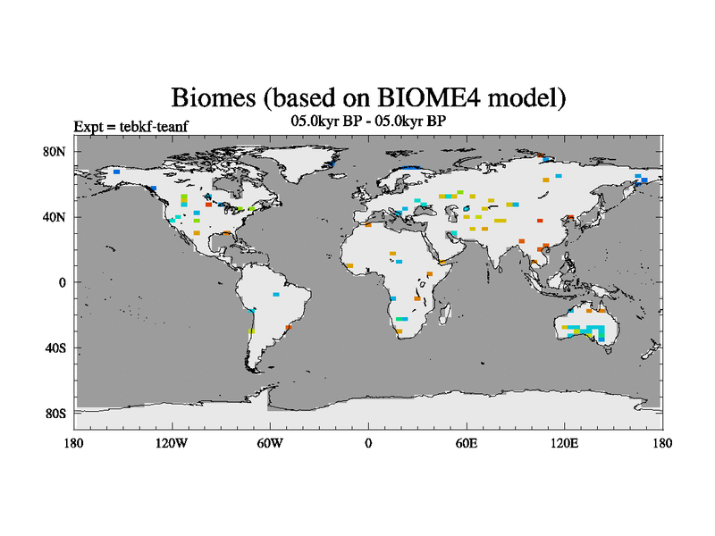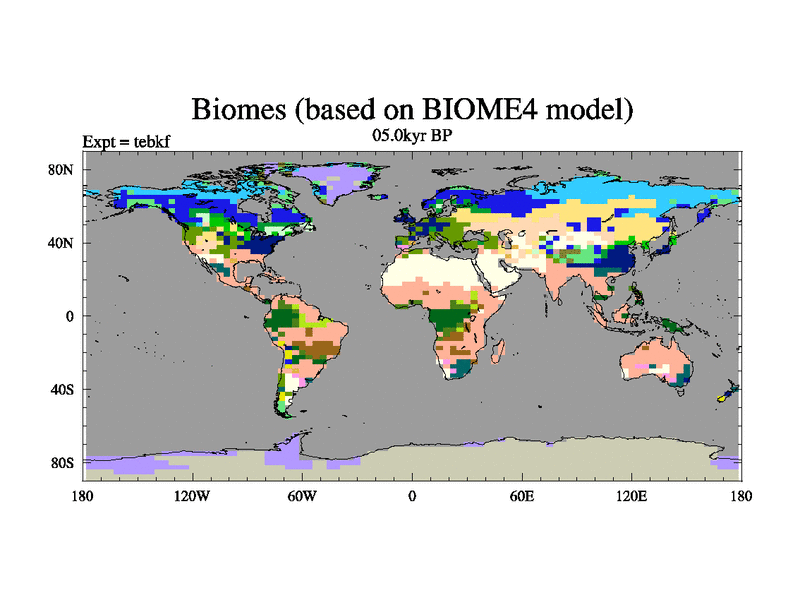This is the 05.0 kyr BP simulation for a new set of deglaciation BBC runs using Peltier6g and TRIFFID. Dynamic mode