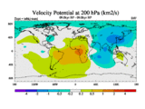 Low Pass Eddy Kinetic Energy at 200 hPa
