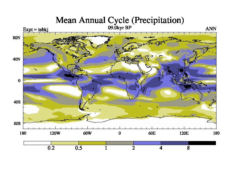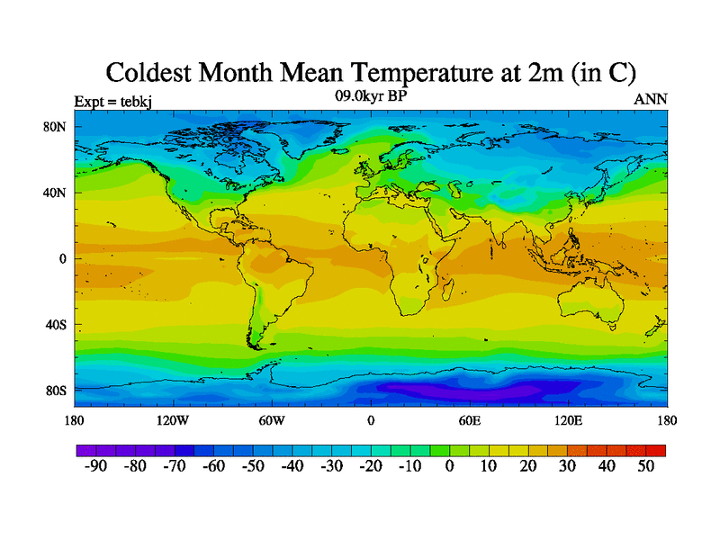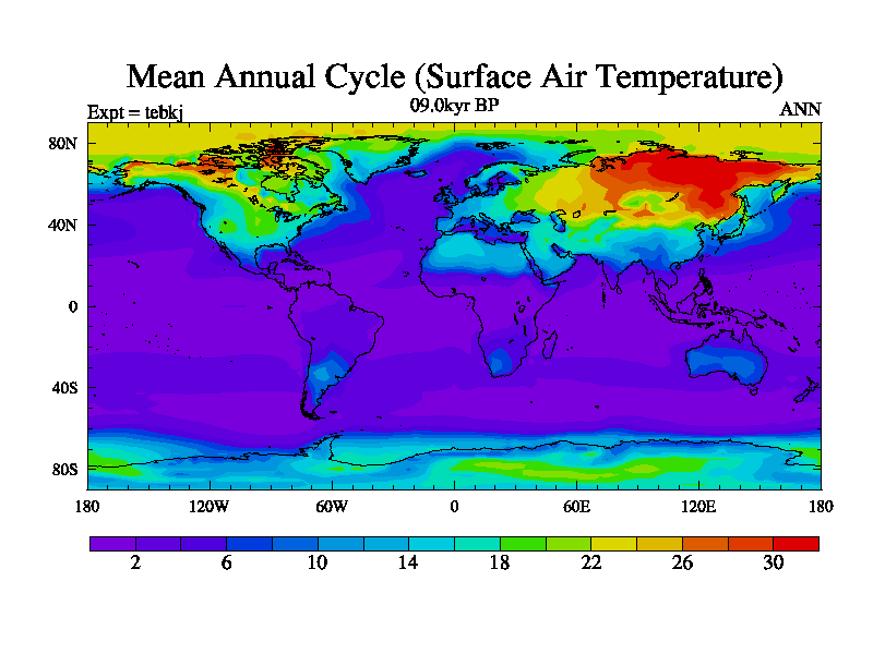 This is the 09.0 kyr BP simulation for a new set of deglaciation BBC runs using Peltier6g and TRIFFID. Dynamic mode
