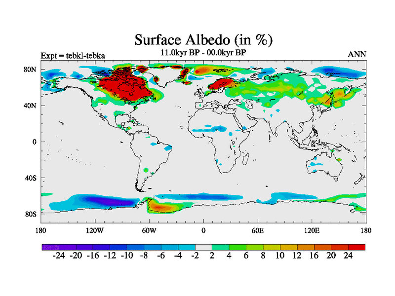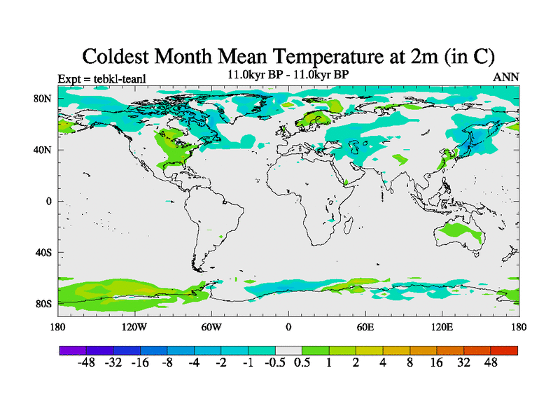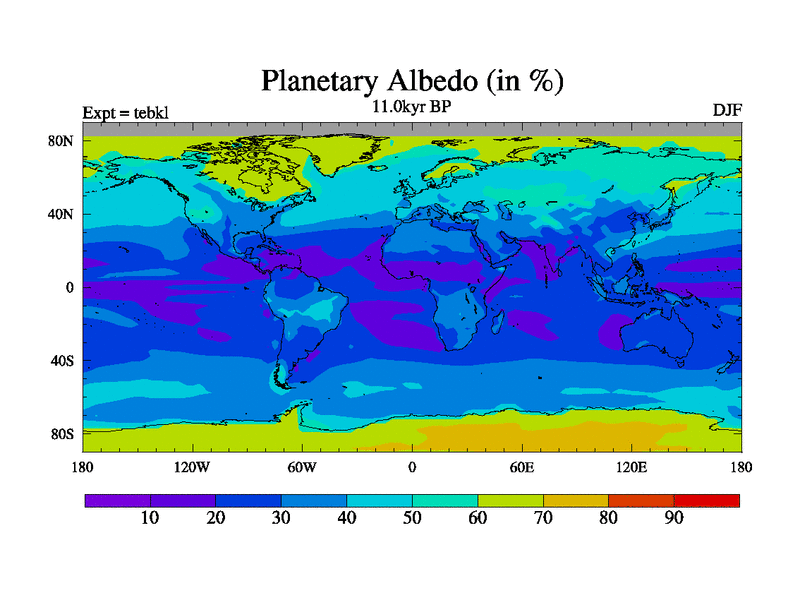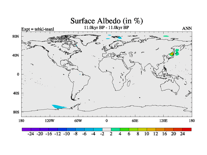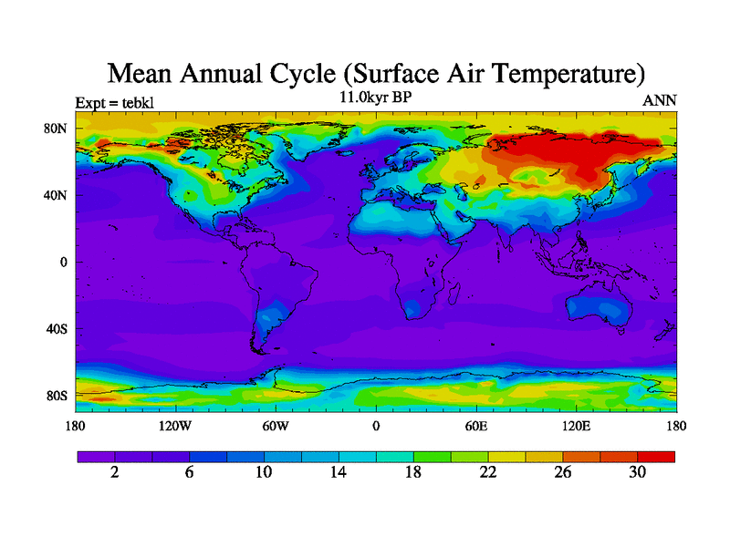 This is the 11.0 kyr BP simulation for a new set of deglaciation BBC runs using Peltier6g and TRIFFID. Dynamic mode