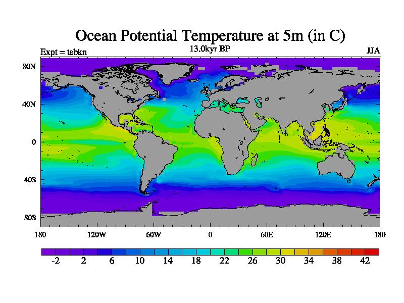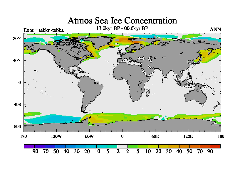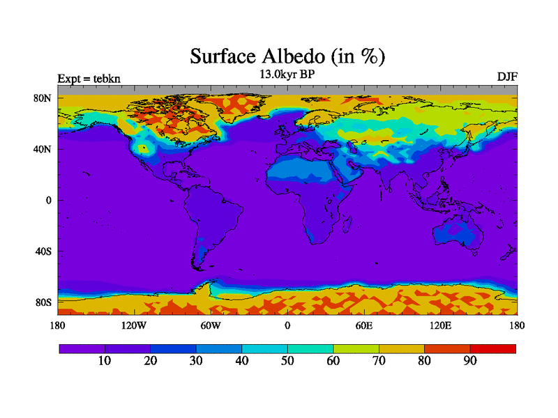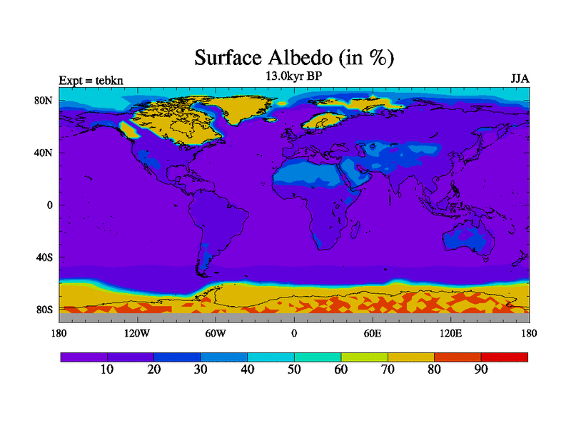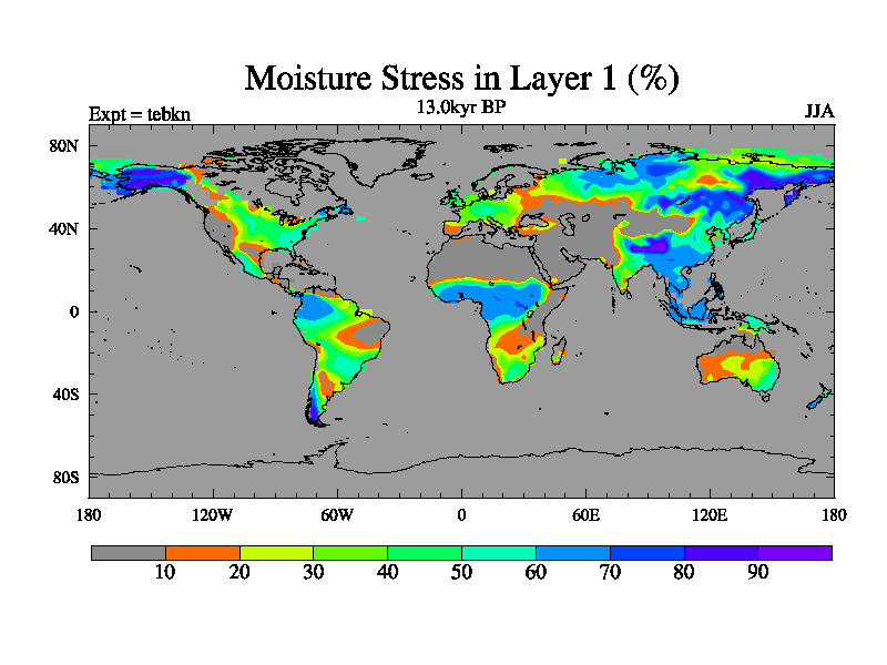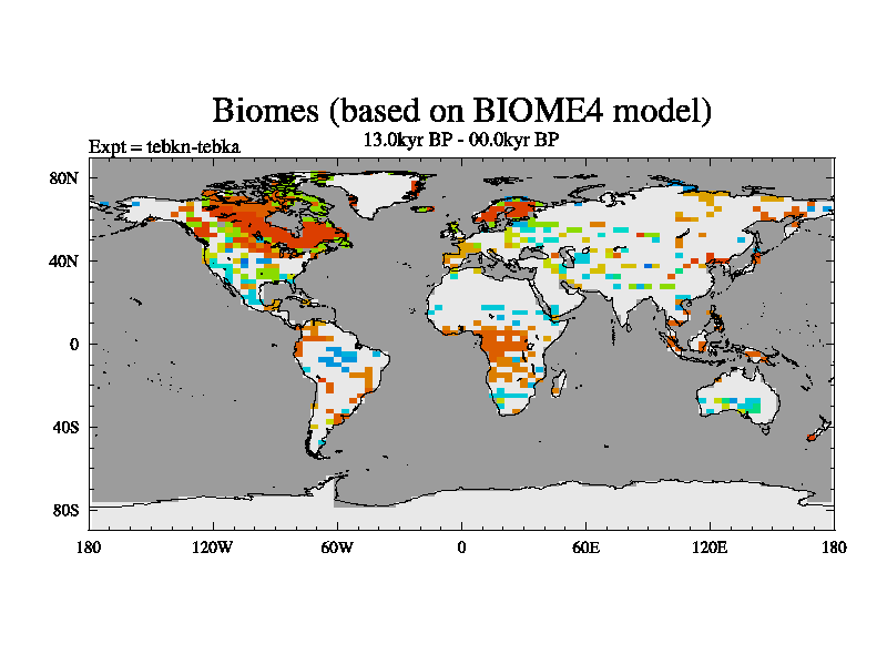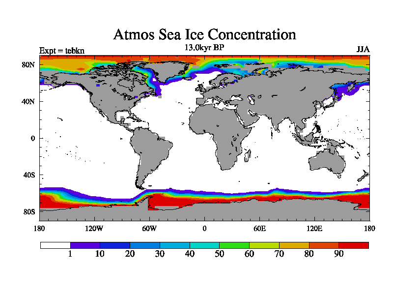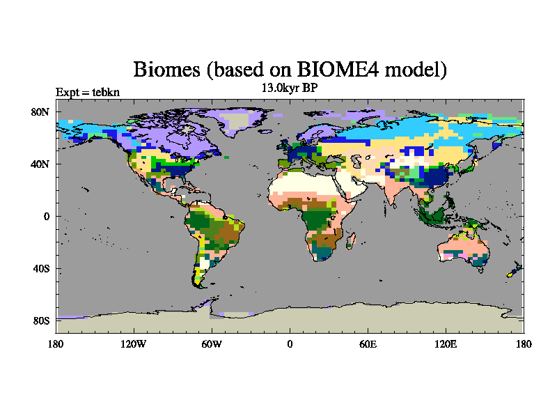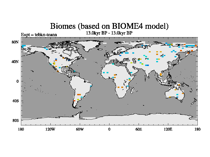 This is the 13.0 kyr BP simulation for a new set of deglaciation BBC runs using Peltier6g and TRIFFID. Dynamic mode