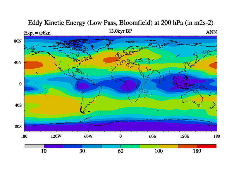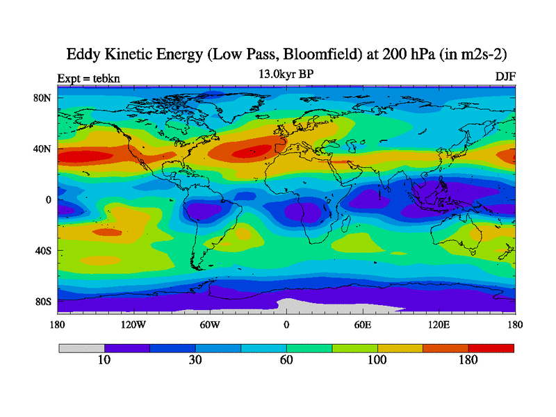 Low Pass Eddy Kinetic Energy at 200 hPa