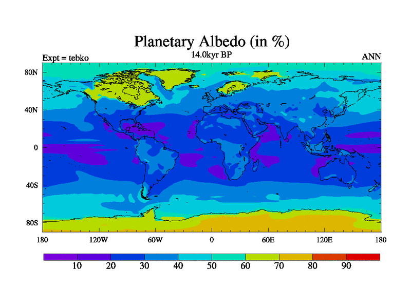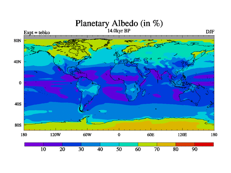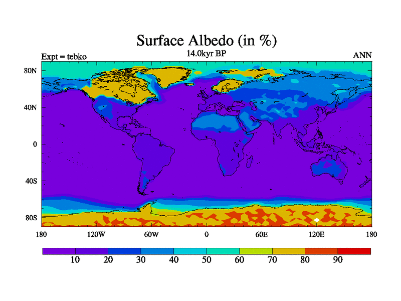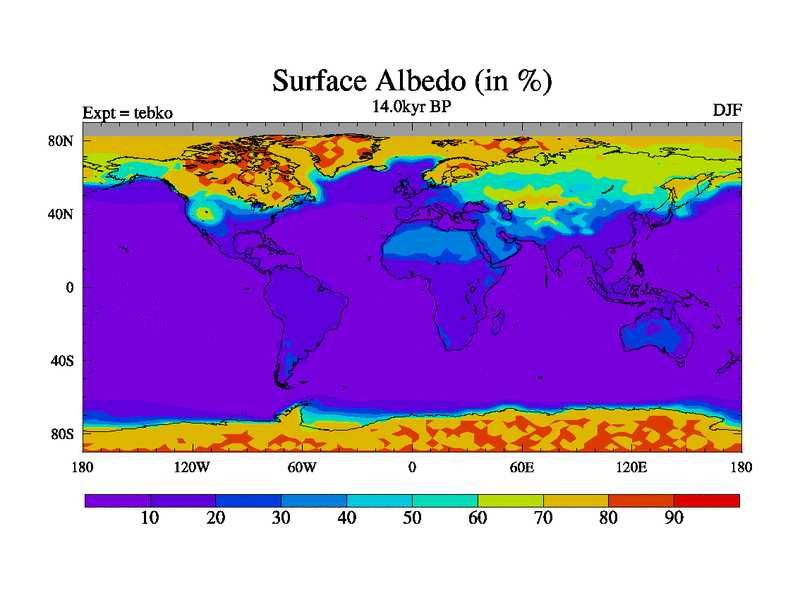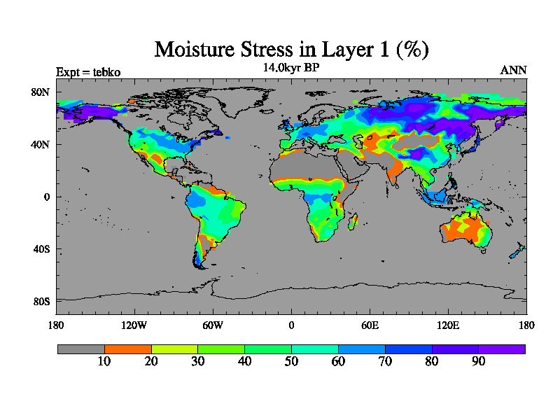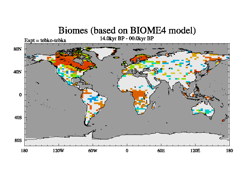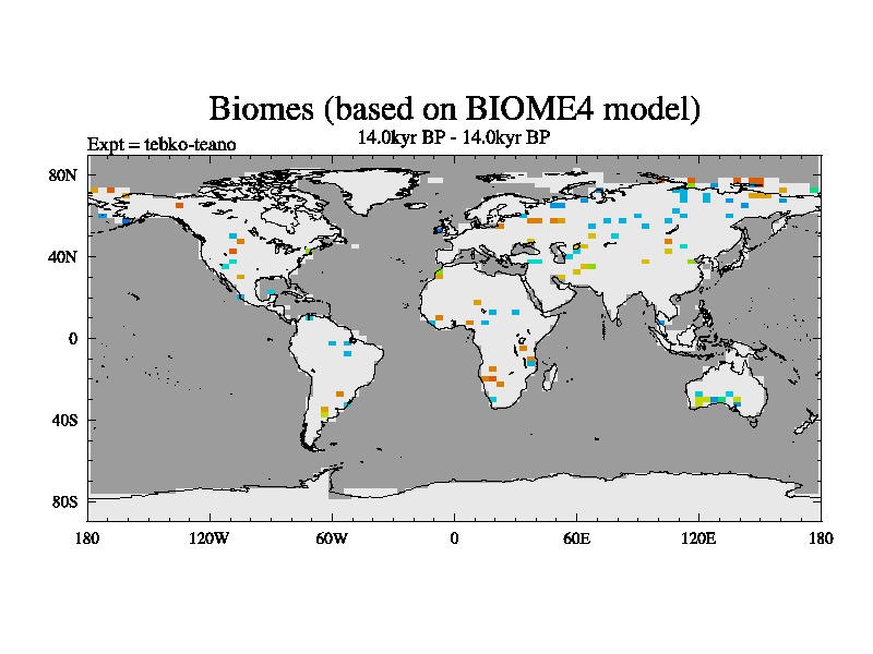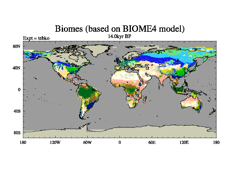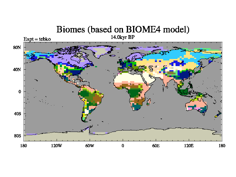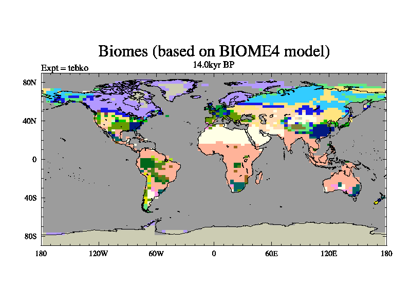 This is the 14.0 kyr BP simulation for a new set of deglaciation BBC runs using Peltier6g and TRIFFID. Dynamic mode