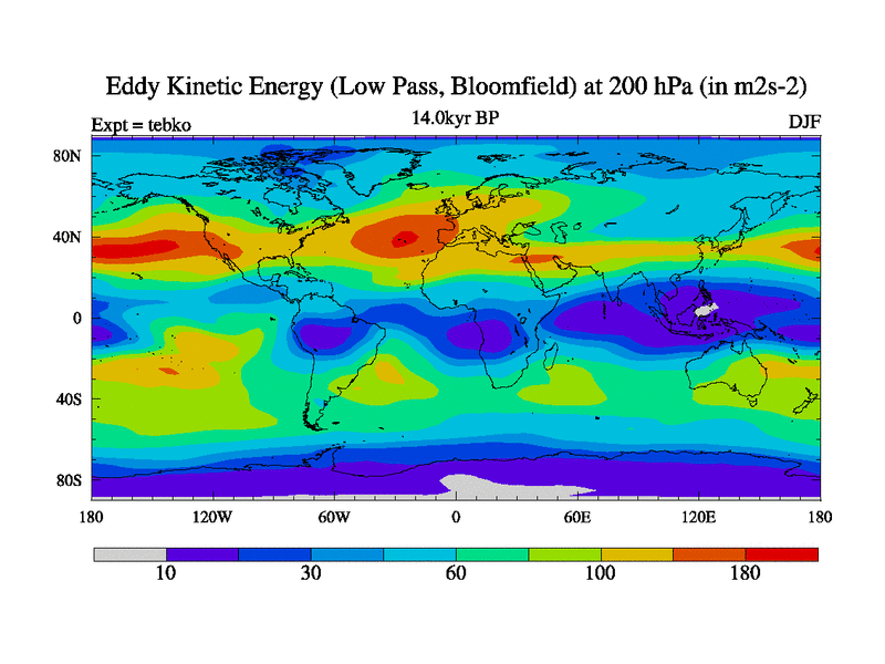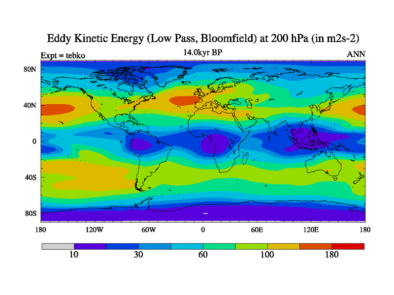 Low Pass Eddy Kinetic Energy at 200 hPa