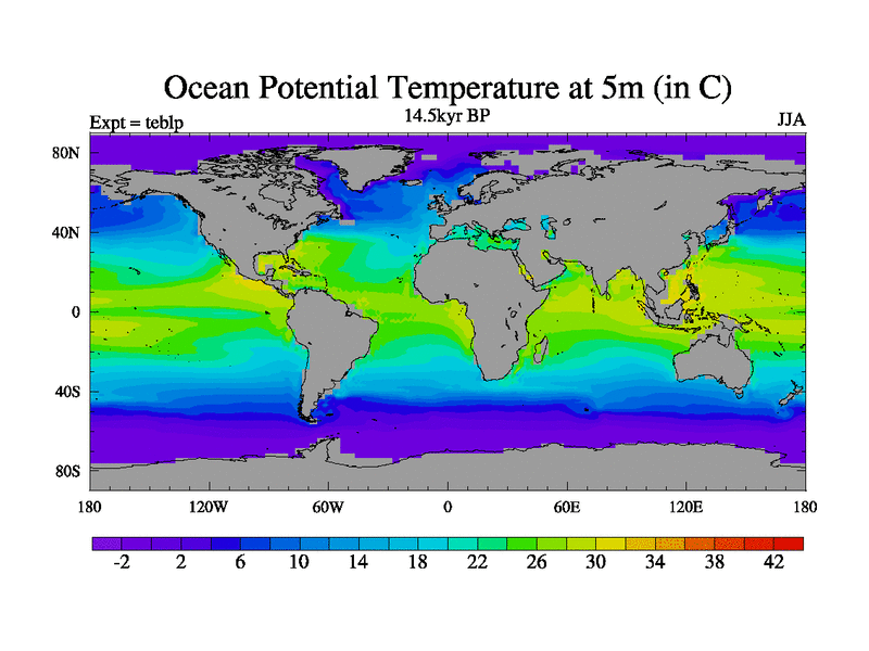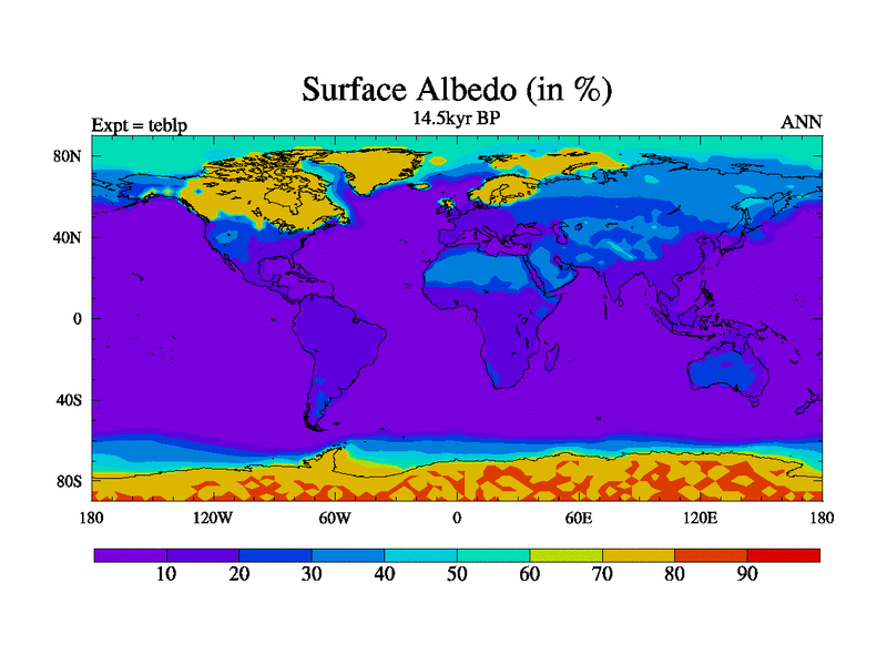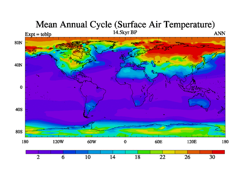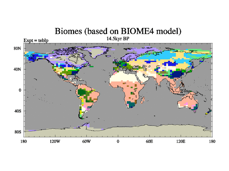 This is the 14.5 kyr BP simulation for a new set of deglaciation BBC runs using Peltier6g and TRIFFID. Dynamic mode
