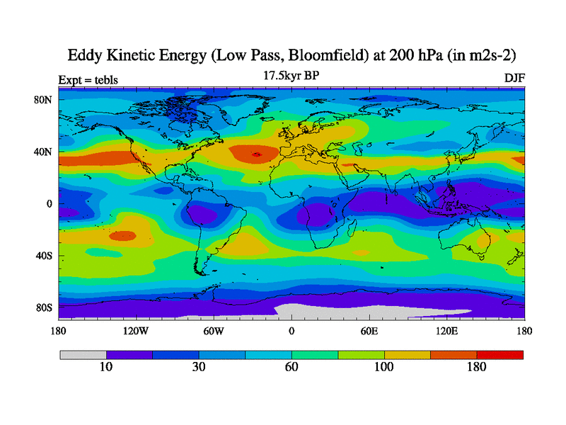 Low Pass Eddy Kinetic Energy at 200 hPa