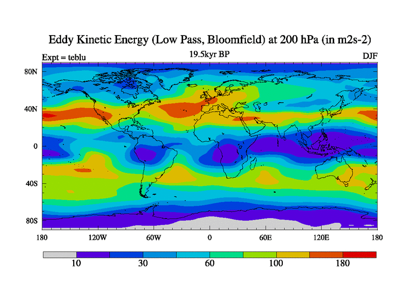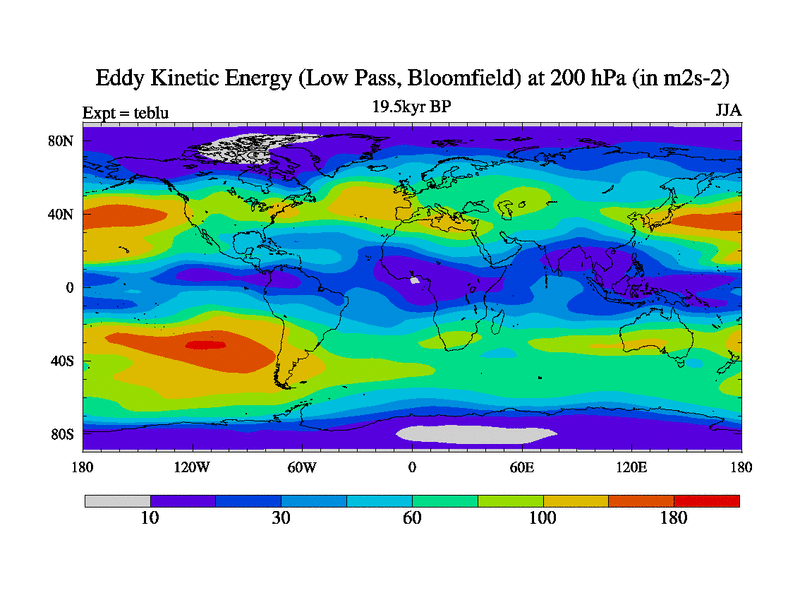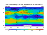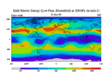 Low Pass Eddy Kinetic Energy at 200 hPa
