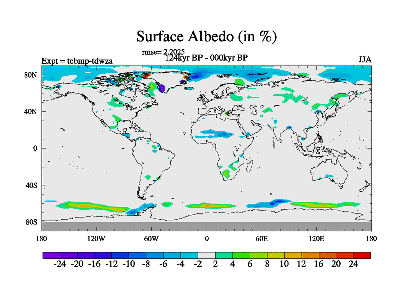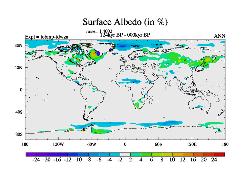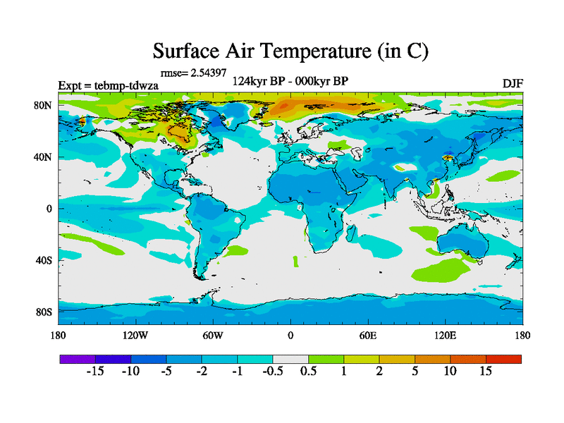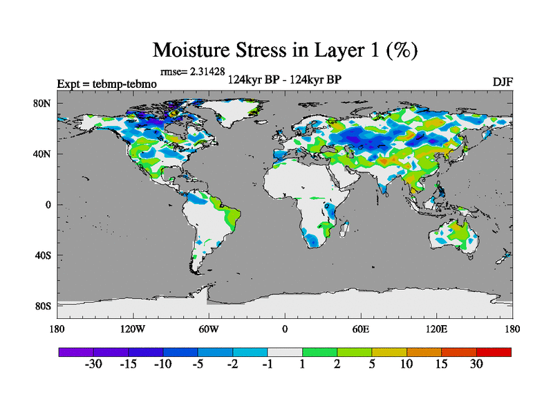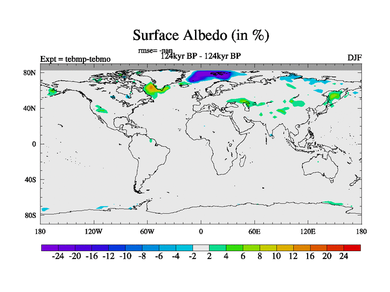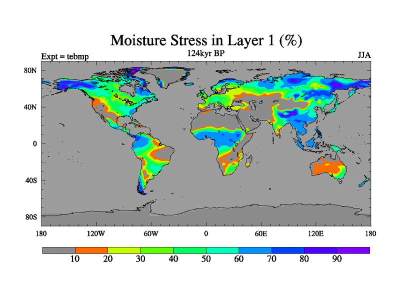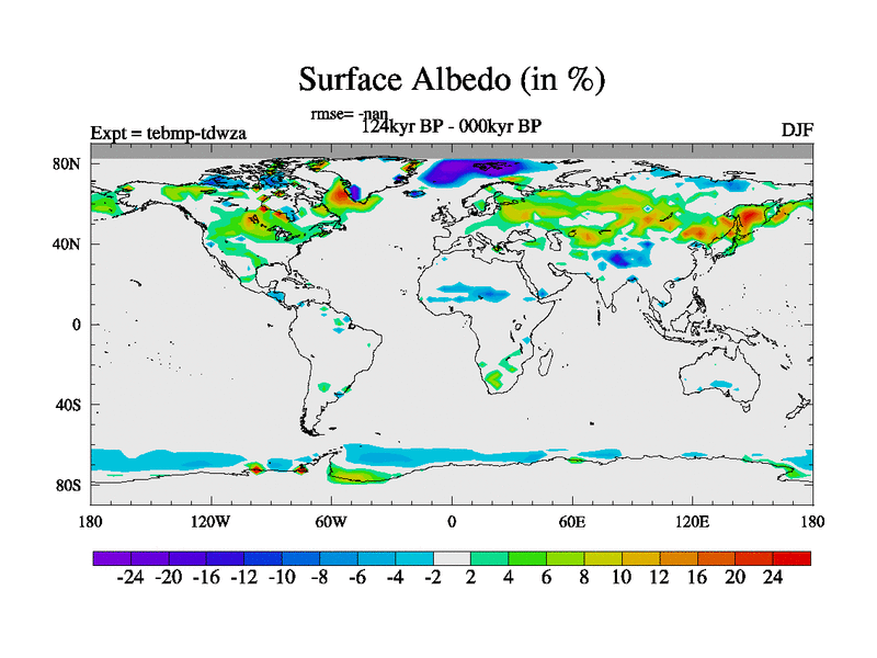 This is the 124kyr BP simulation for a new set of BBC runs using TRIFFID. Dynamic mode, started from tdwt set of simulations (new BBC dynamic TRIFFID runs). This version includes the dark_respiration update. There is change in ice based on DeBoer.