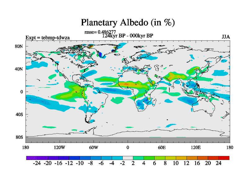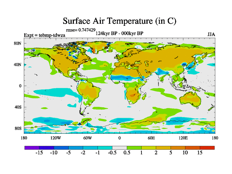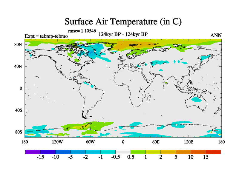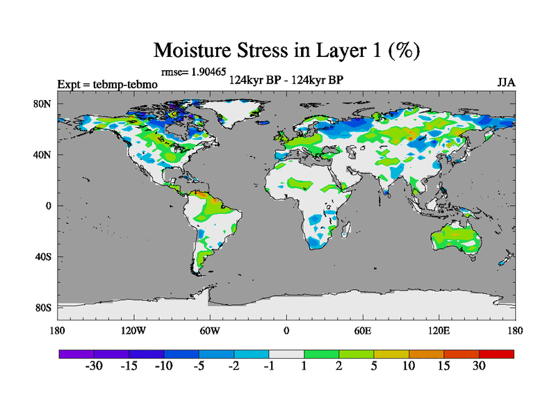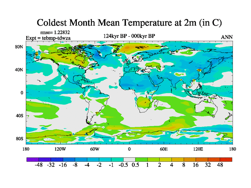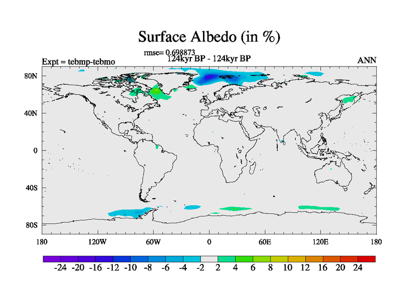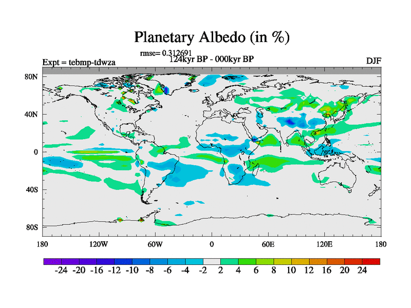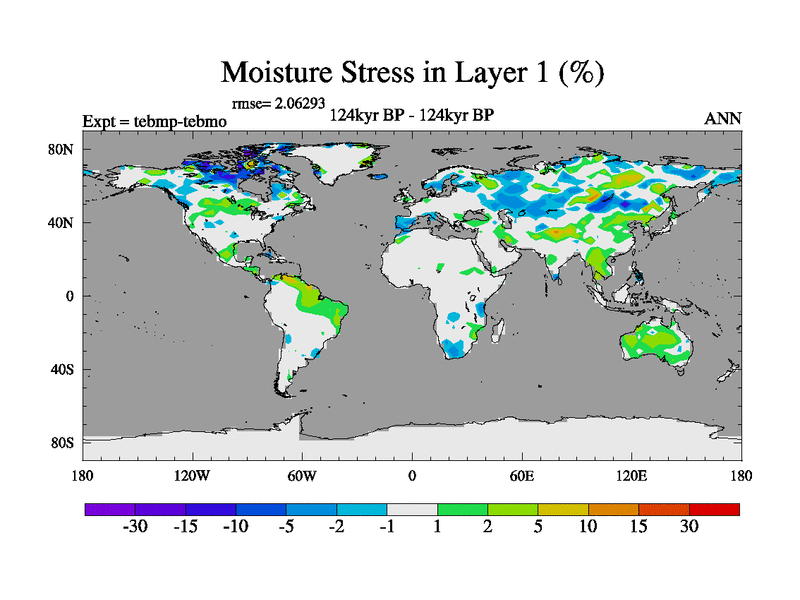 This is the 124kyr BP simulation for a new set of BBC runs using TRIFFID. Dynamic mode, started from tdwt set of simulations (new BBC dynamic TRIFFID runs). This version includes the dark_respiration update. There is change in ice based on DeBoer.