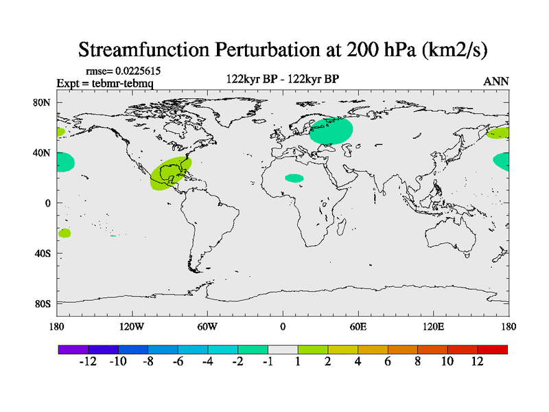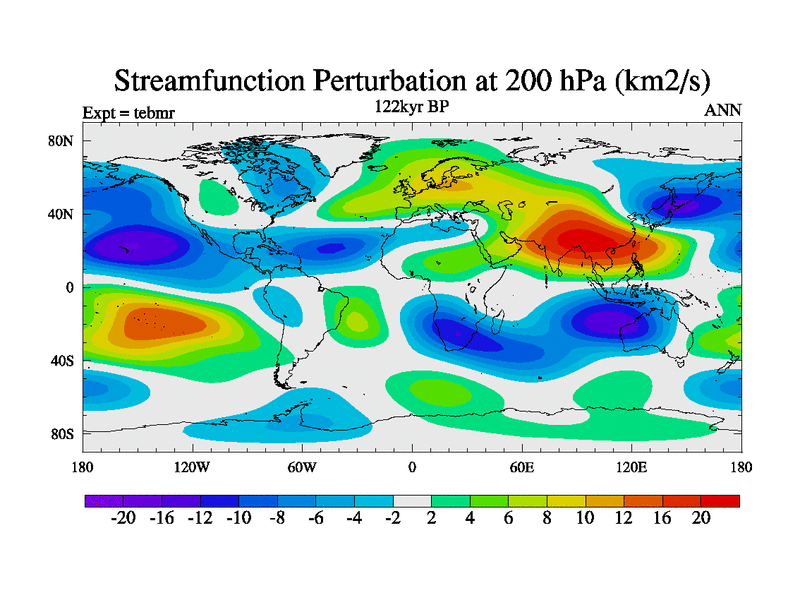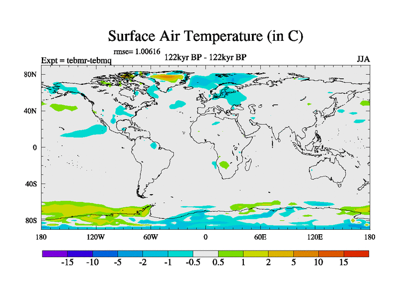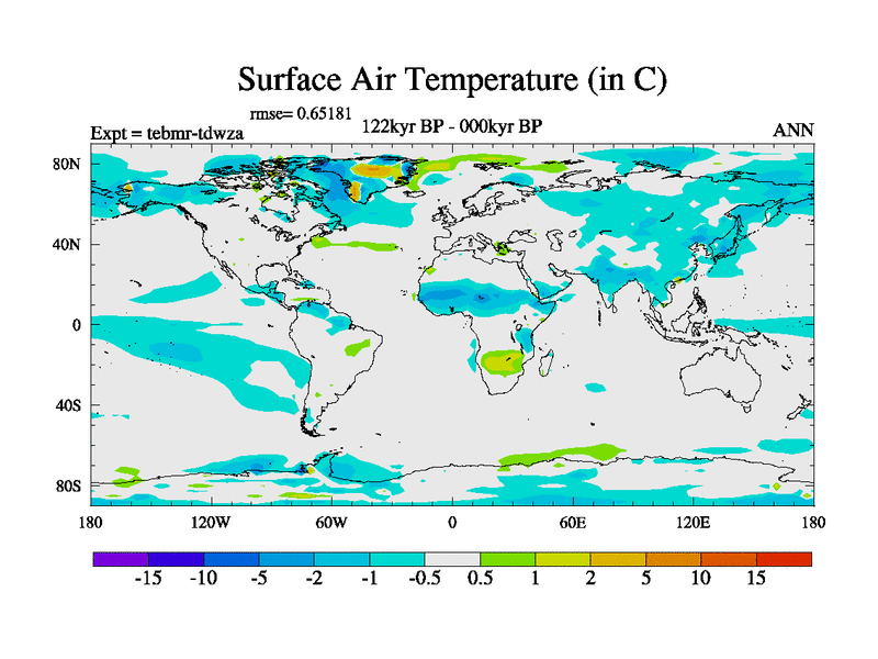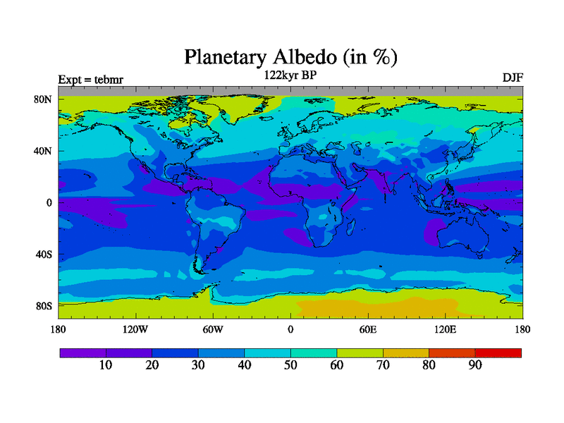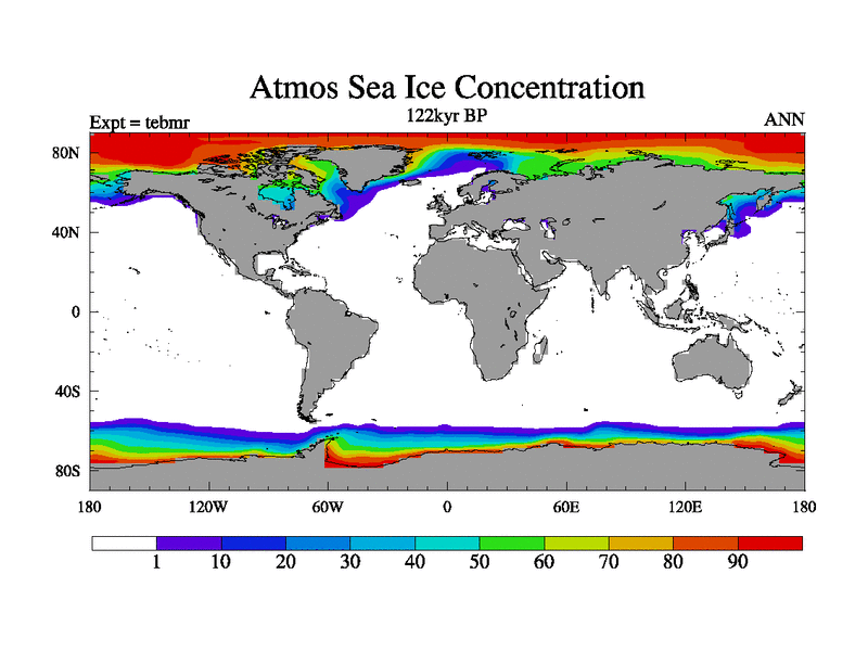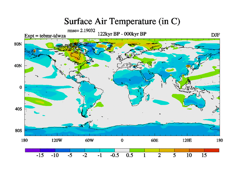 This is the 122kyr BP simulation for a new set of BBC runs using TRIFFID. Dynamic mode, started from tdwt set of simulations (new BBC dynamic TRIFFID runs). This version includes the dark_respiration update. There is change in ice based on DeBoer.