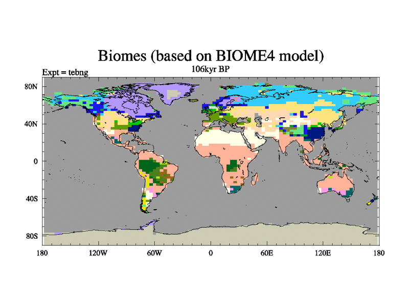 This is the 106kyr BP simulation for a new set of BBC runs using TRIFFID. Dynamic mode, started from tdwt set of simulations (new BBC dynamic TRIFFID runs). This version includes the dark_respiration update.
