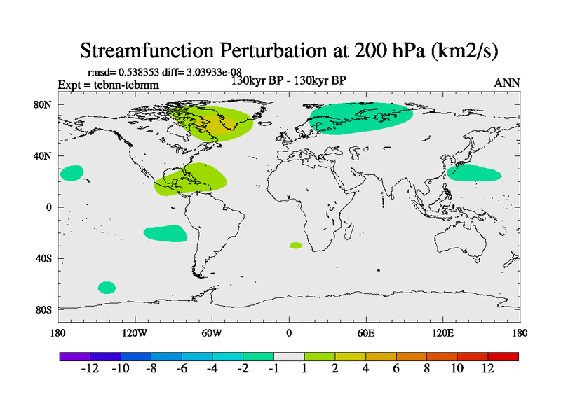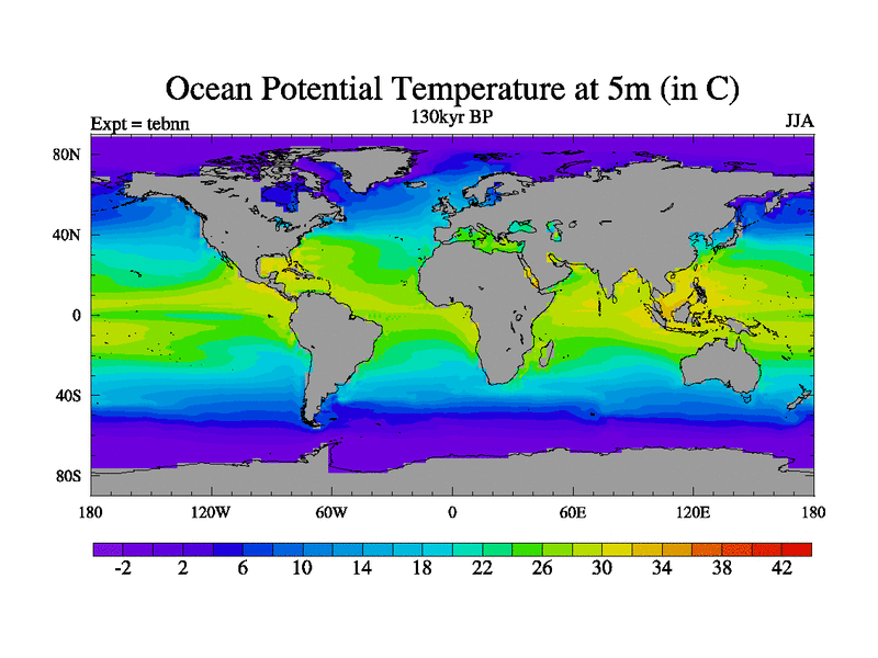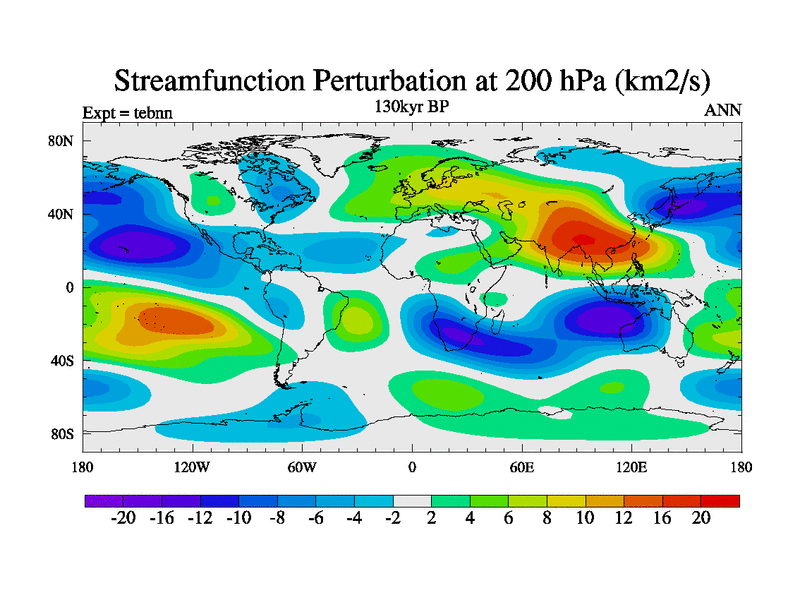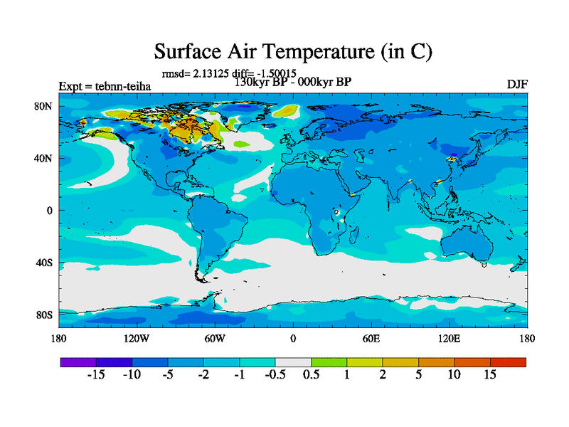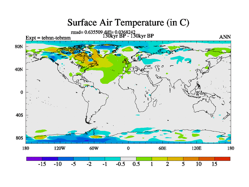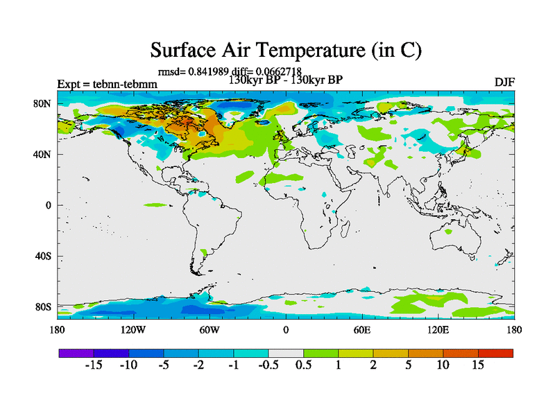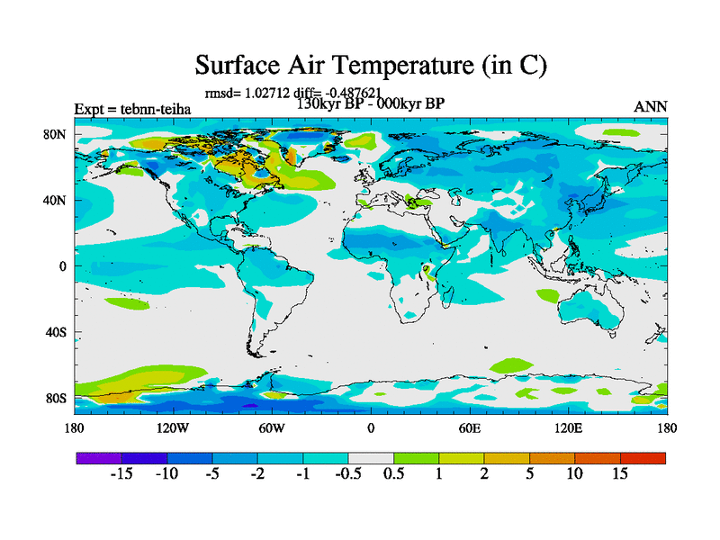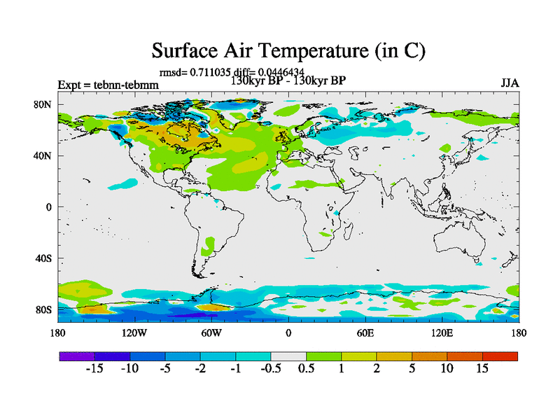 This is the 130kyr BP simulation for a new set of BBC runs using TRIFFID. Dynamic mode, started from tdwt set of simulations (new BBC dynamic TRIFFID runs). This version includes the dark_respiration update. There is change in ice based on DeBoer.