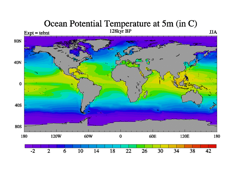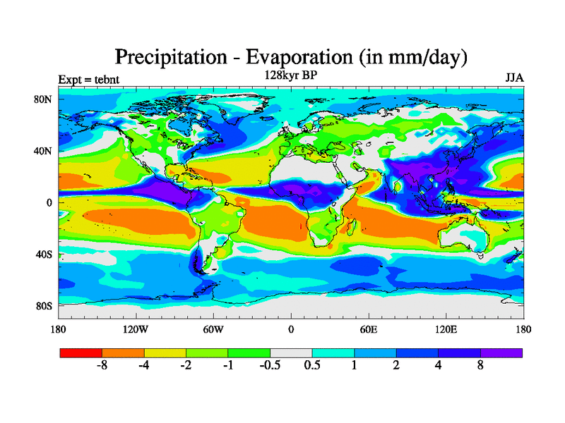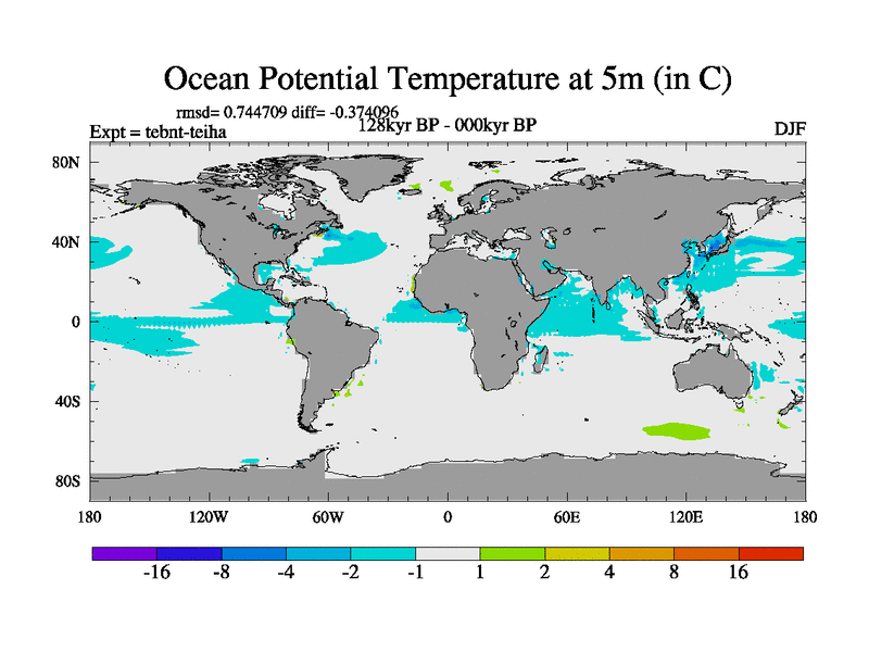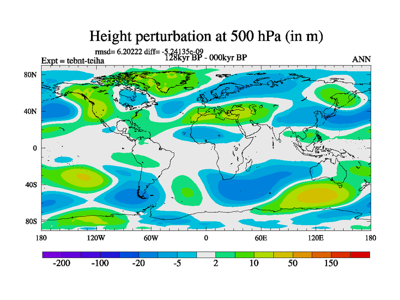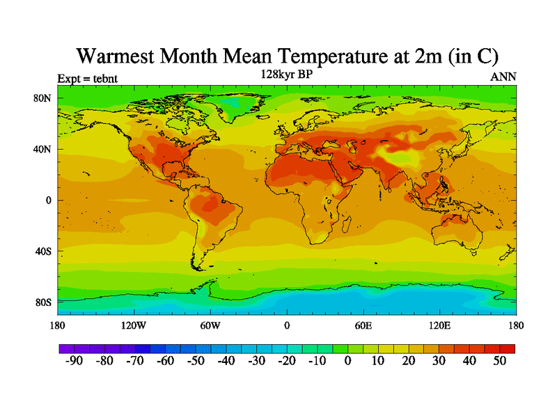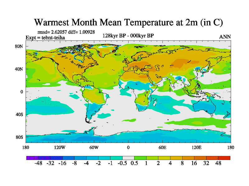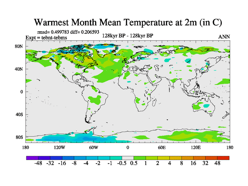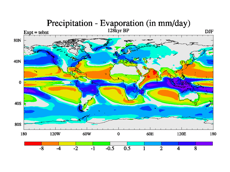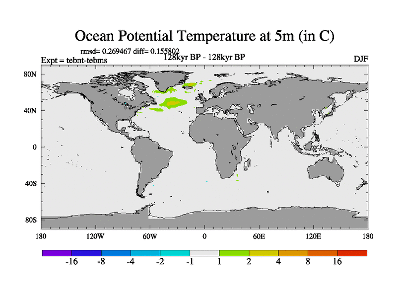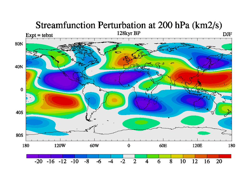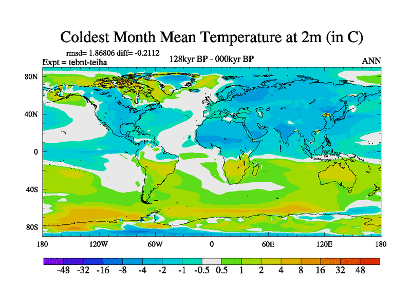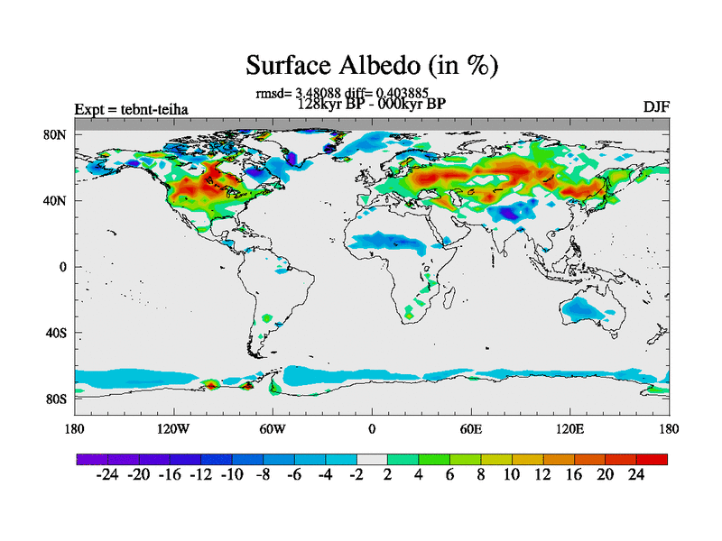 This is the 128kyr BP simulation for a new set of BBC runs using TRIFFID. Dynamic mode, started from tdwt set of simulations (new BBC dynamic TRIFFID runs). This version includes the dark_respiration update. There is change in ice based on DeBoer.