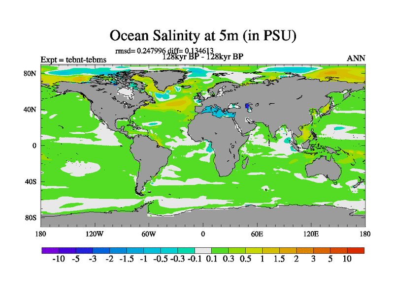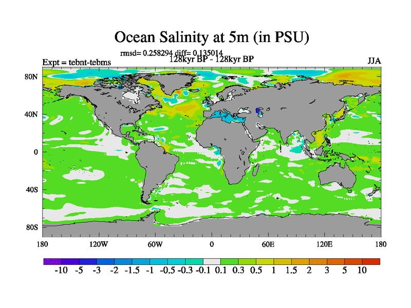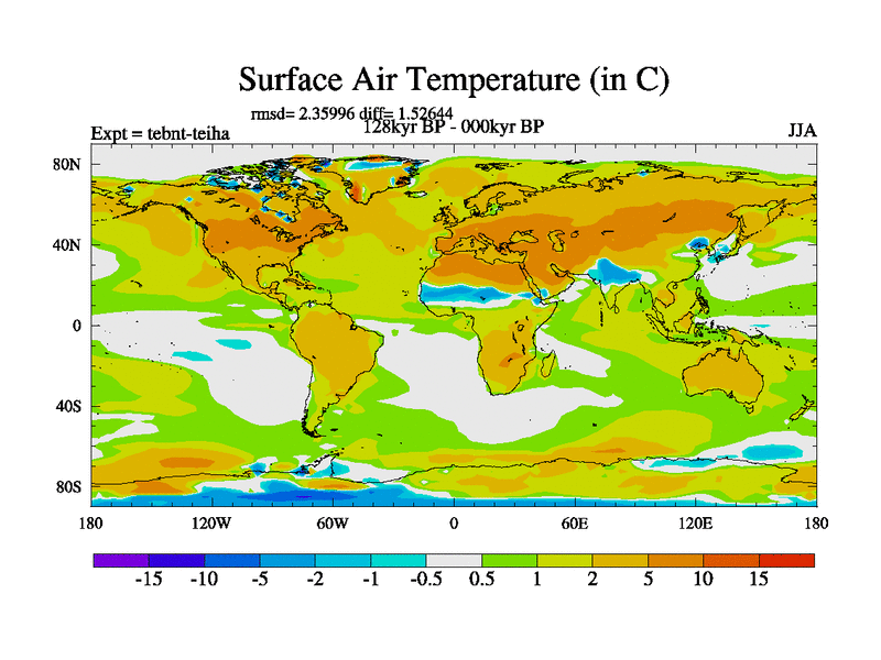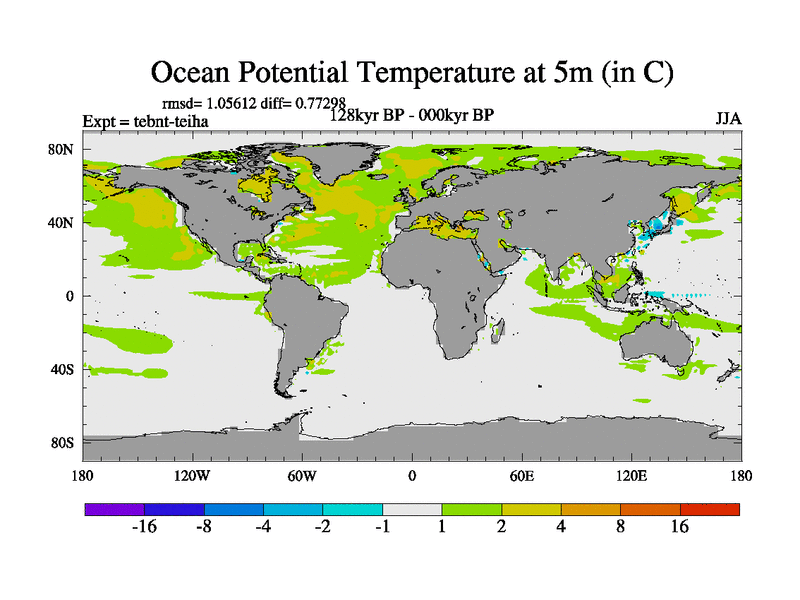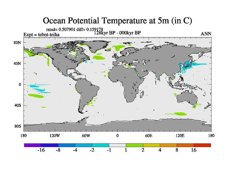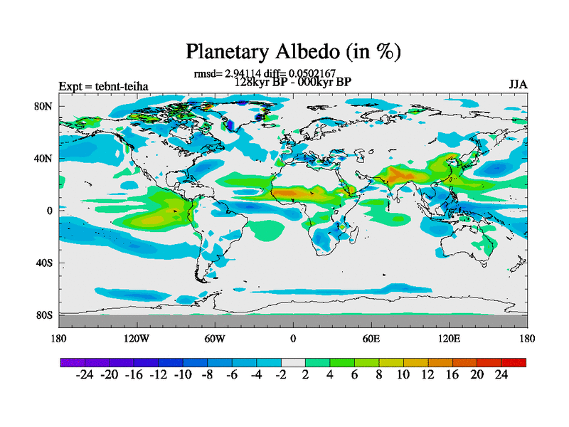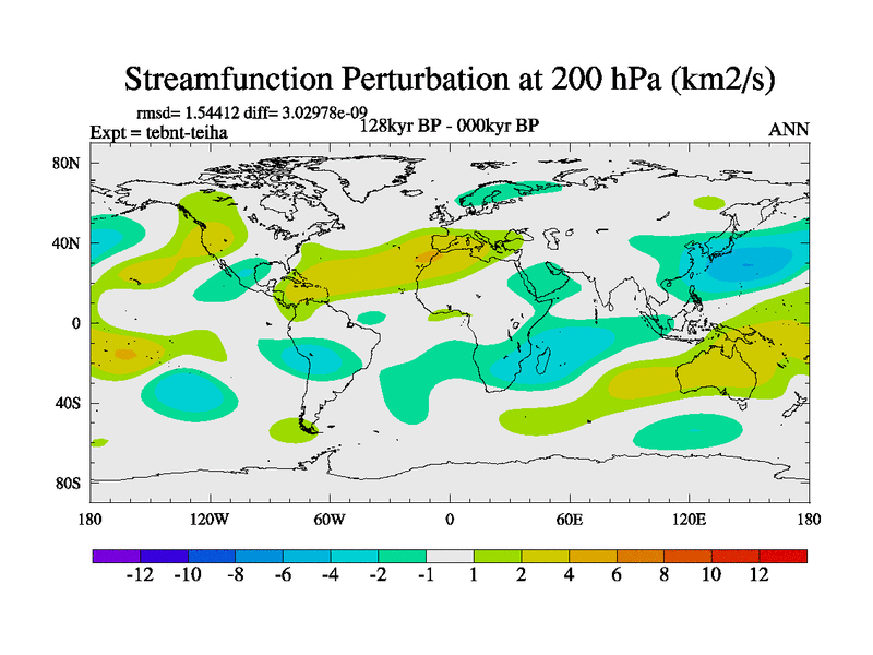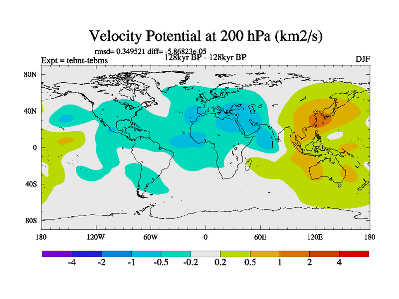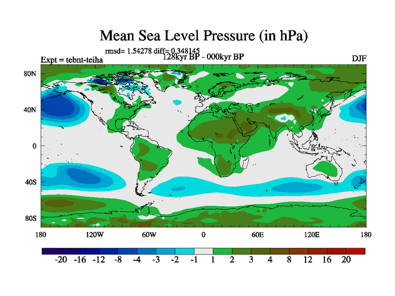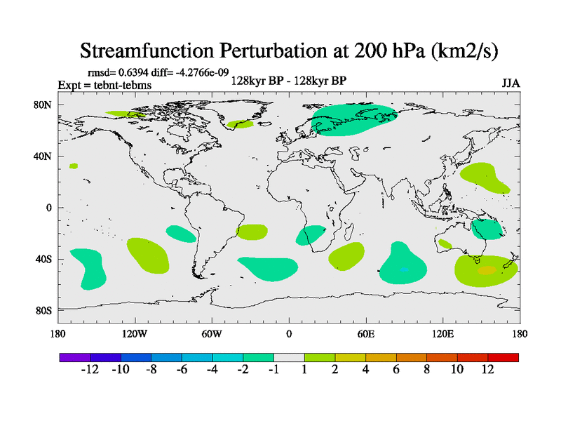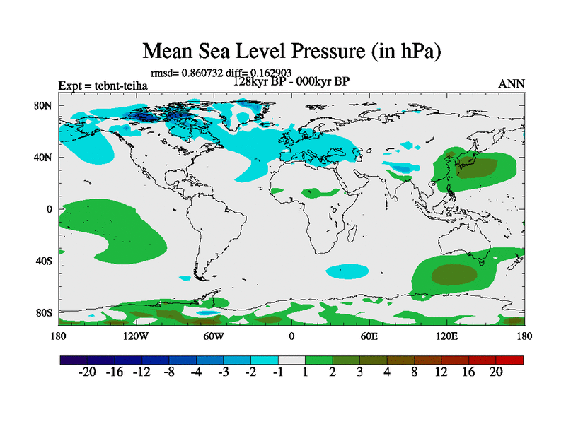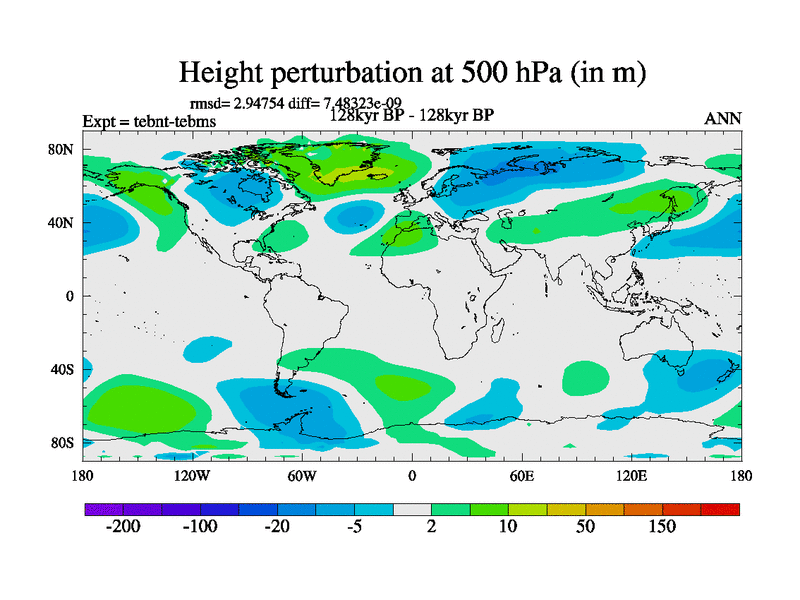 This is the 128kyr BP simulation for a new set of BBC runs using TRIFFID. Dynamic mode, started from tdwt set of simulations (new BBC dynamic TRIFFID runs). This version includes the dark_respiration update. There is change in ice based on DeBoer.