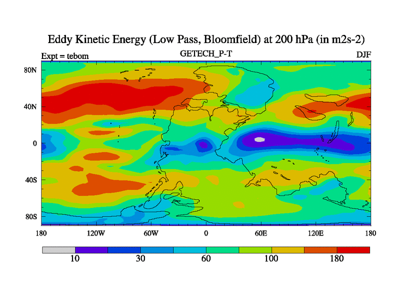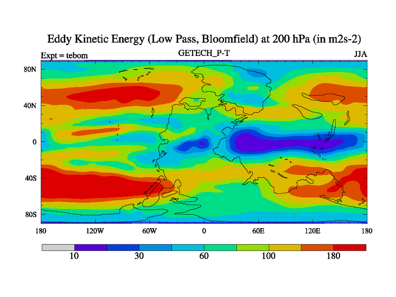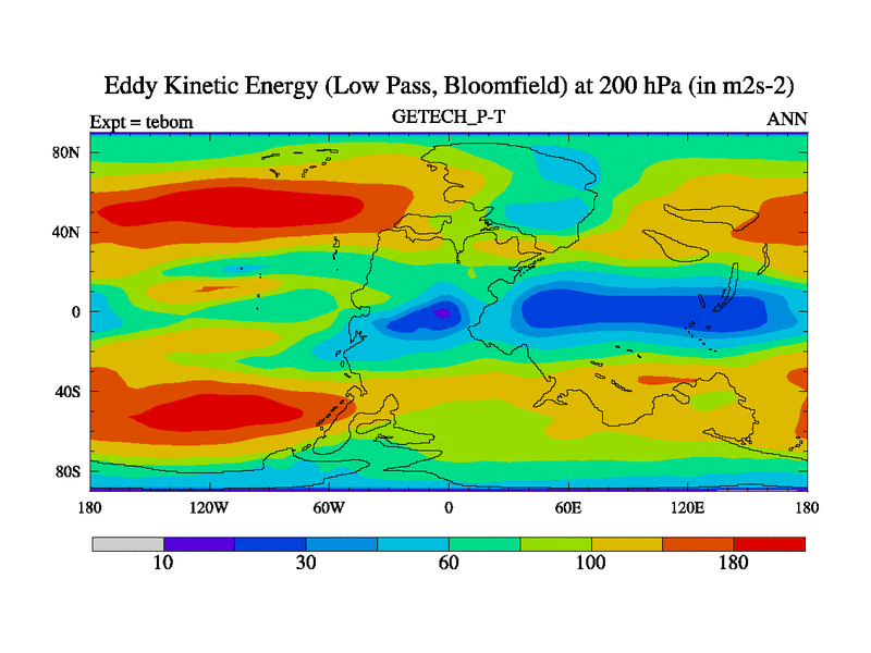 Low Pass Eddy Kinetic Energy at 200 hPa