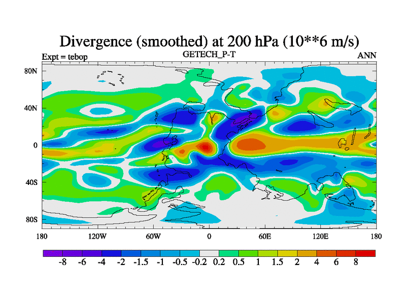 Low Pass Eddy Kinetic Energy at 200 hPa