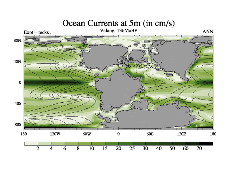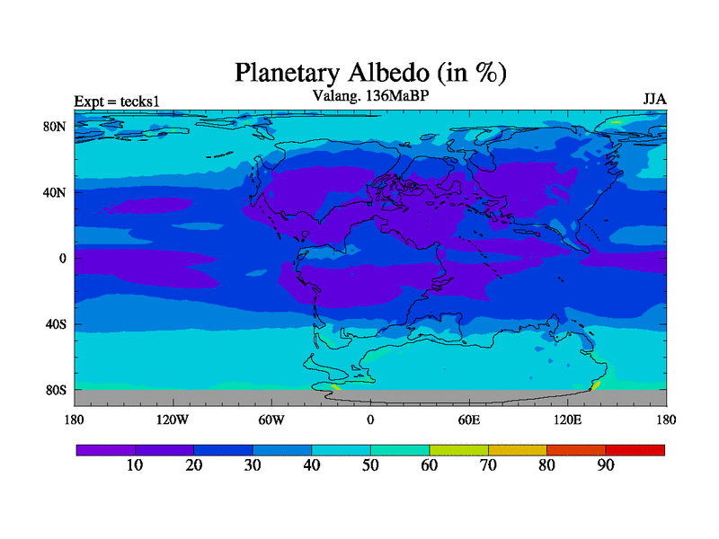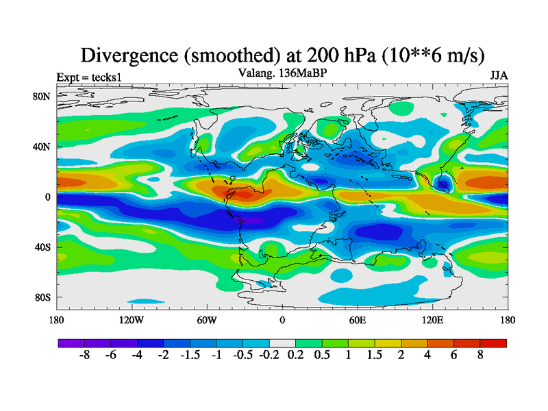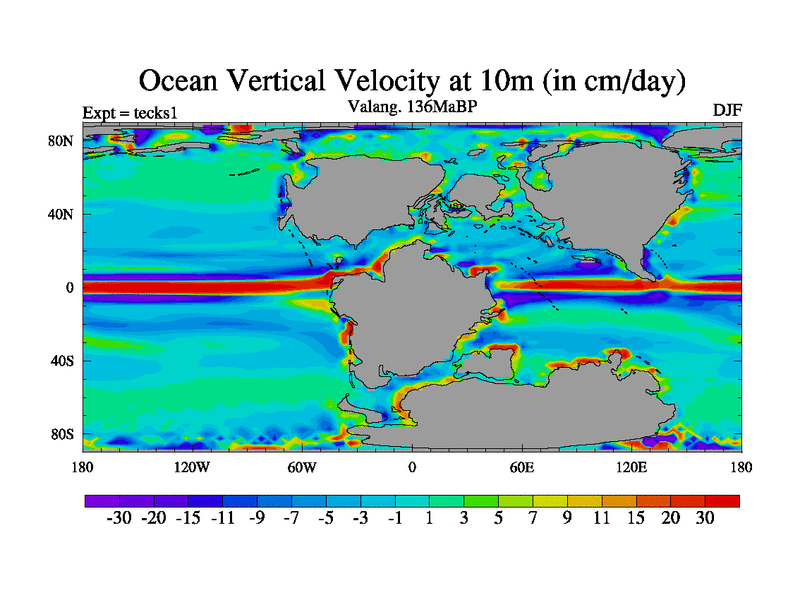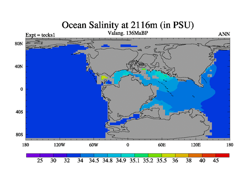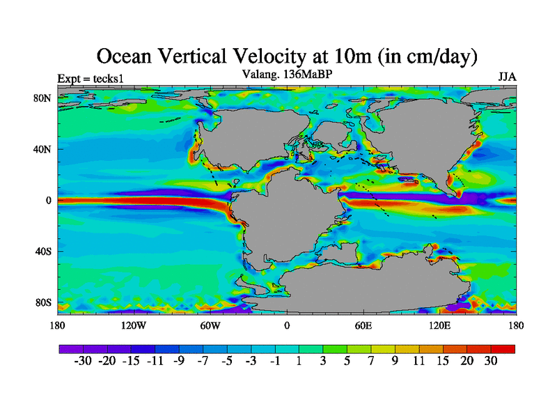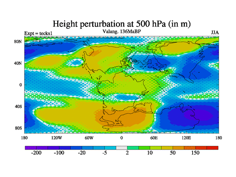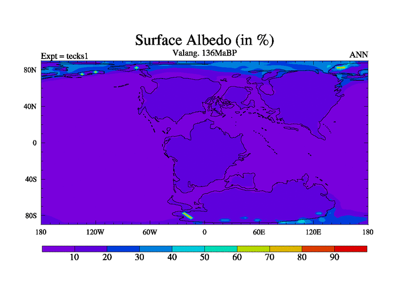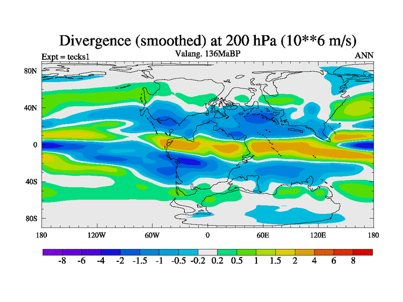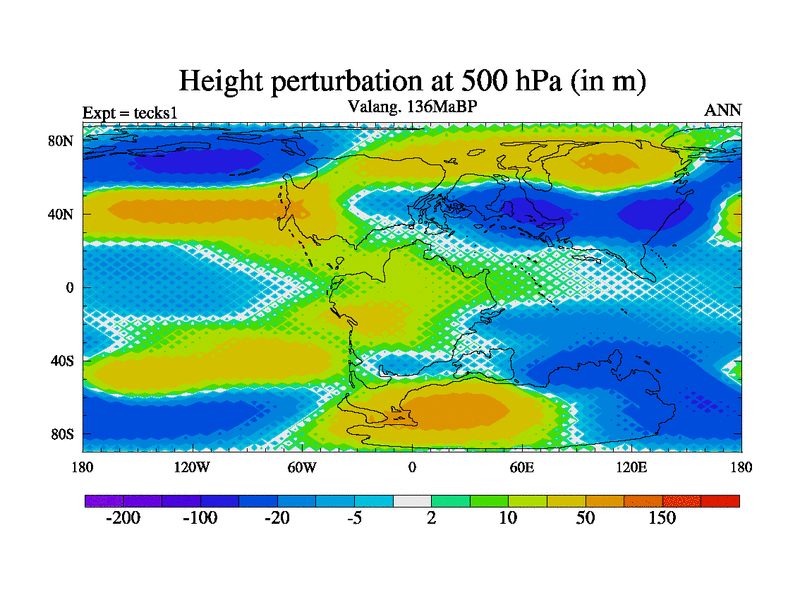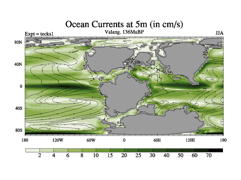 This is a Valanginian simulation with new control palaeogeog, 3xco2 and with appropriate reduction in solar constant. It is also using the newer ozone mod which better represents the effects of stratospheric ozone. It does include the ocean stream function.