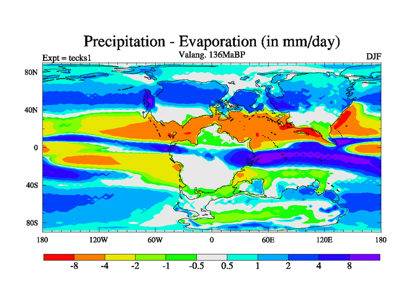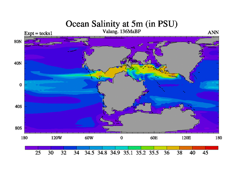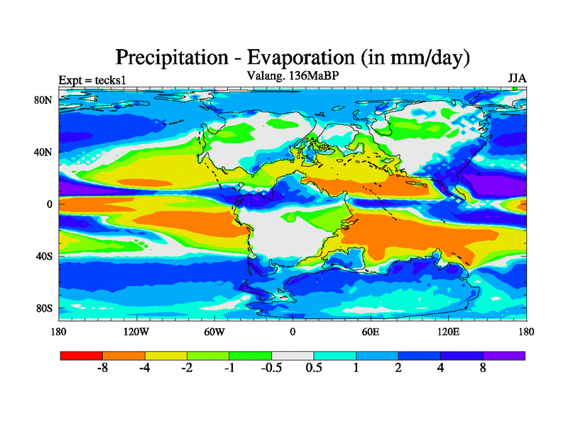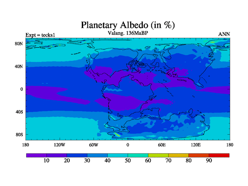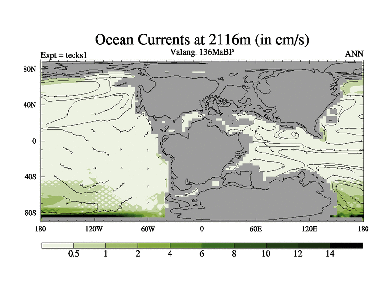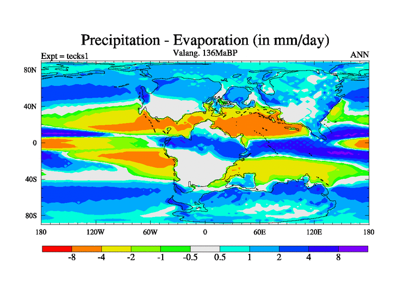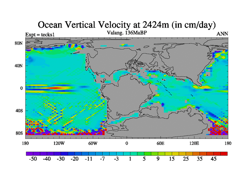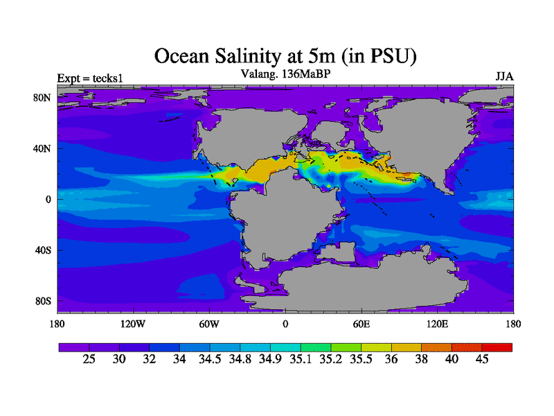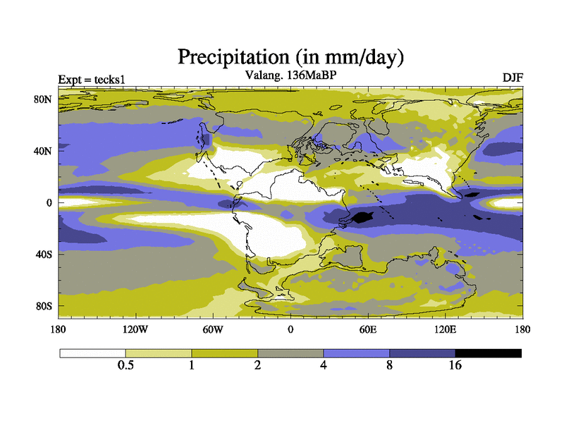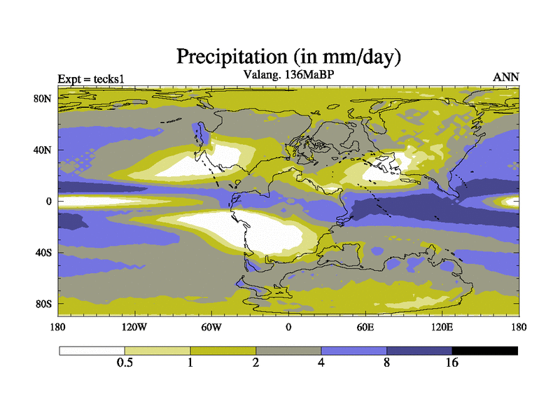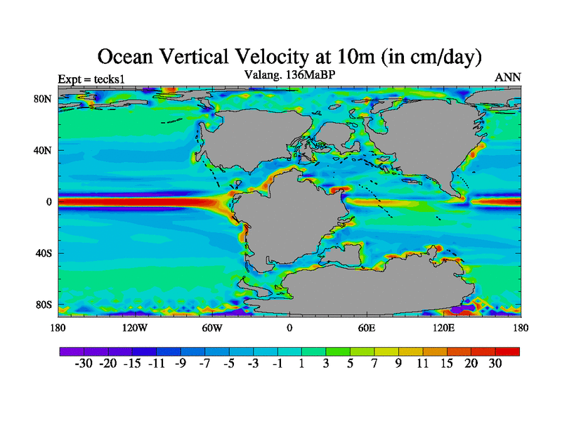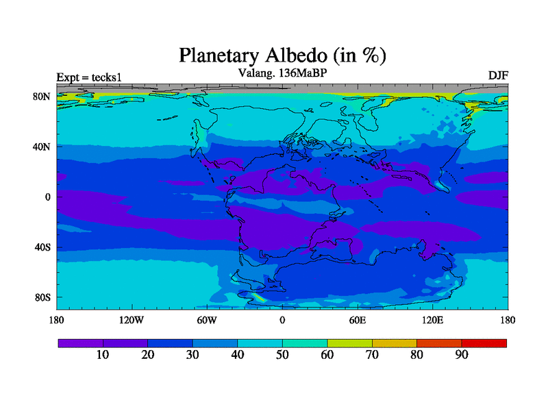 This is a Valanginian simulation with new control palaeogeog, 3xco2 and with appropriate reduction in solar constant. It is also using the newer ozone mod which better represents the effects of stratospheric ozone. It does include the ocean stream function.