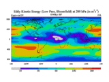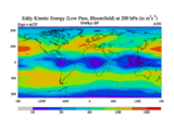 Low Pass Eddy Kinetic Energy at 200 hPa