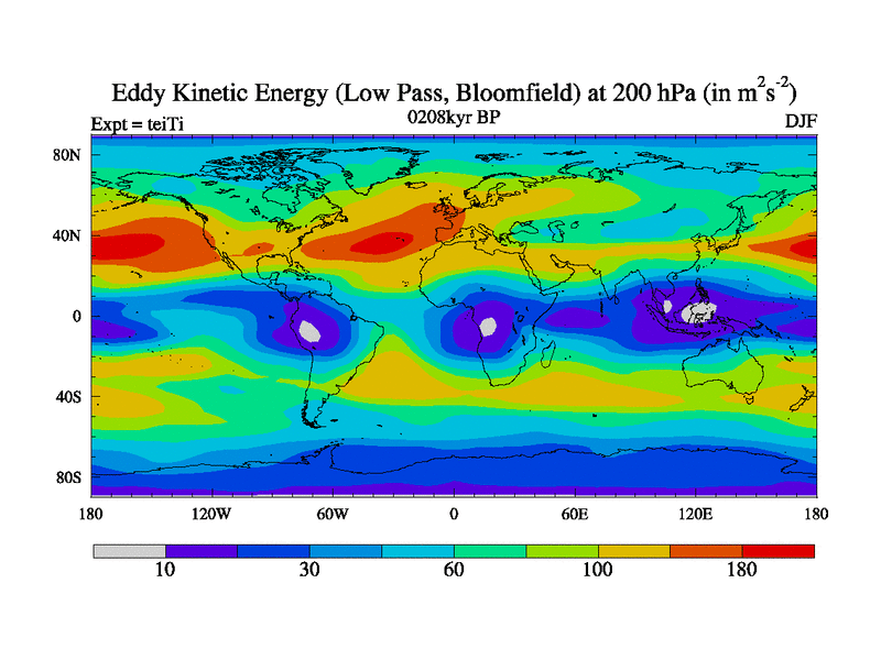 Low Pass Eddy Kinetic Energy at 200 hPa