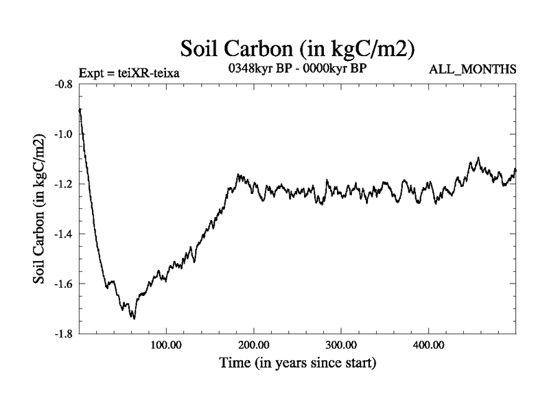 This is the pre-industrial simulation for a new set of BBC long runs using TRIFFID. dynamic mode, started from teii set of simulations (new BBC equilibrium TRIFFID runs). This version includes the dark_respiration update.