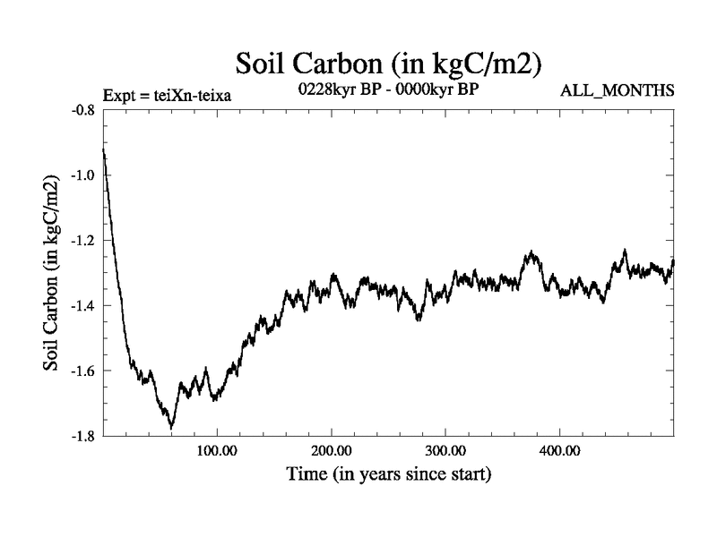 This is the pre-industrial simulation for a new set of BBC long runs using TRIFFID. dynamic mode, started from teii set of simulations (new BBC equilibrium TRIFFID runs). This version includes the dark_respiration update.
