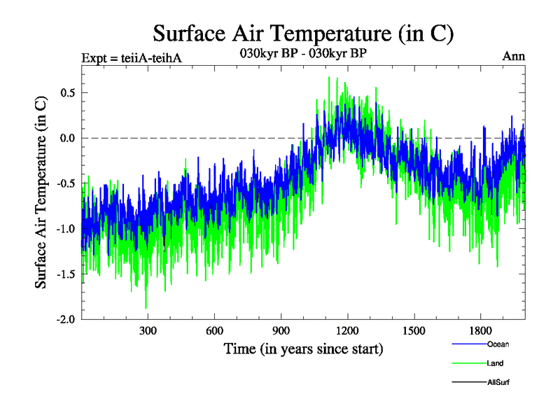 This is the 030kyr BP simulation for a new set of BBC runs using TRIFFID. Dynamic mode, started from tdwt set of simulations (new BBC dynamic TRIFFID runs). This version includes the dark_respiration update.