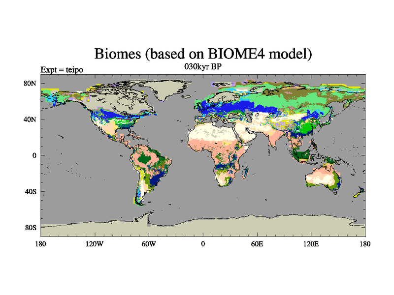 Repeat of 30kyr to confirm oscillation.This is the 030kyr BP simulation for a new set of BBC runs using TRIFFID. Dynamic mode, started from tdwt set of simulations (new BBC dynamic TRIFFID runs). This version includes the dark_respiration update.