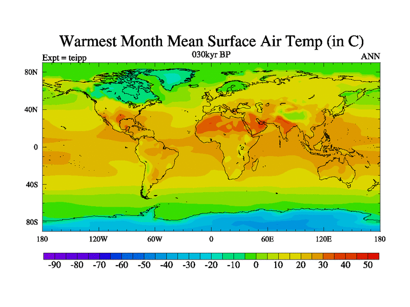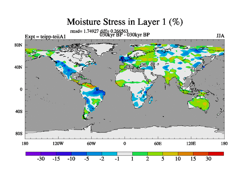 Extension of teipf but more output. This is the 030kyr BP simulation for a new set of BBC runs using TRIFFID. Dynamic mode, started from tdwt set of simulations (new BBC dynamic TRIFFID runs). This version includes the dark_respiration update.