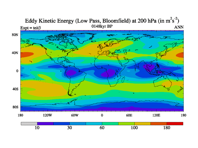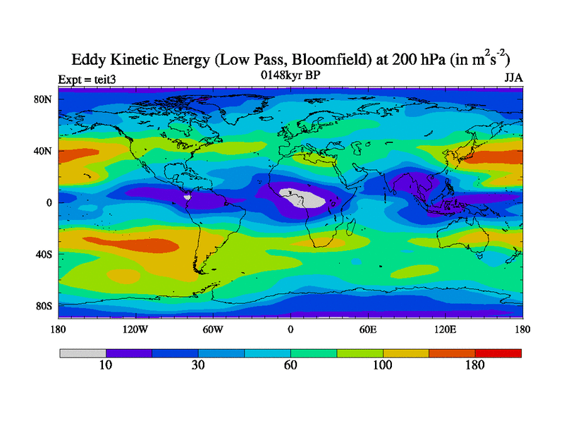 Low Pass Eddy Kinetic Energy at 200 hPa