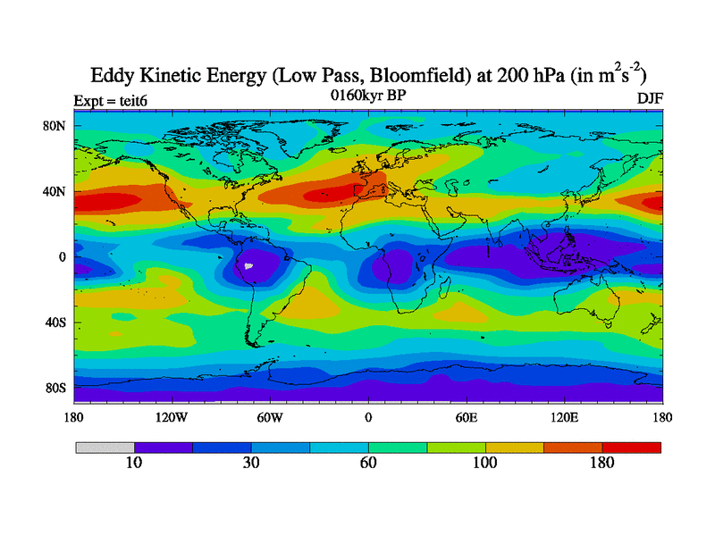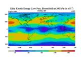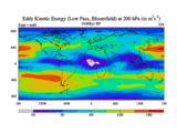 Low Pass Eddy Kinetic Energy at 200 hPa