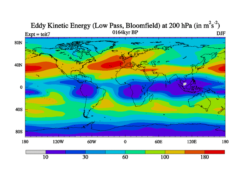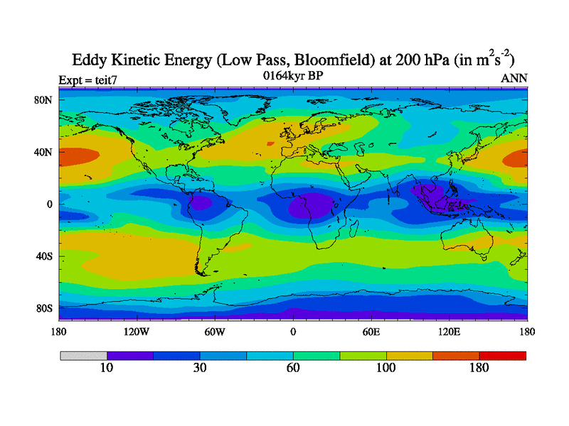 Low Pass Eddy Kinetic Energy at 200 hPa