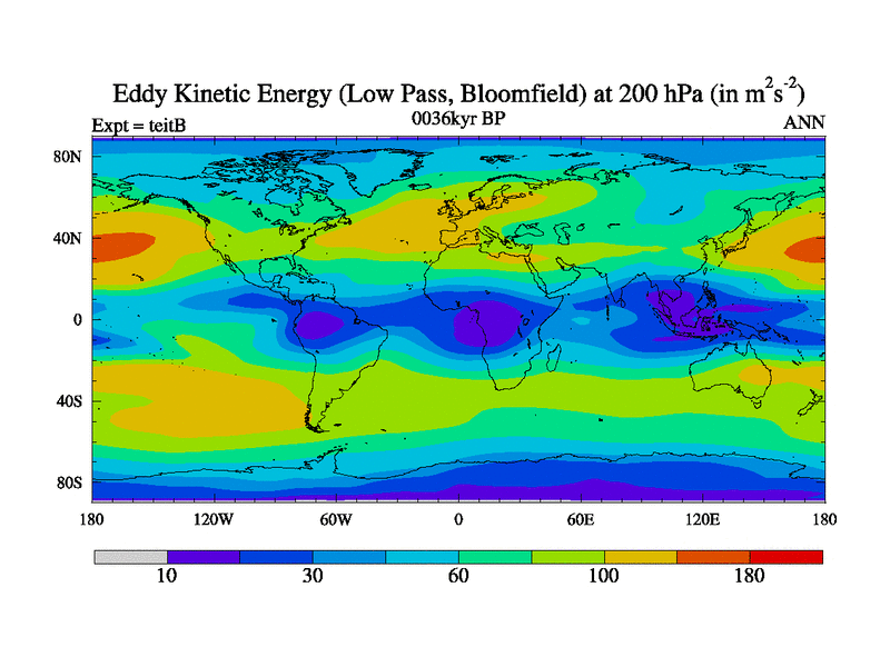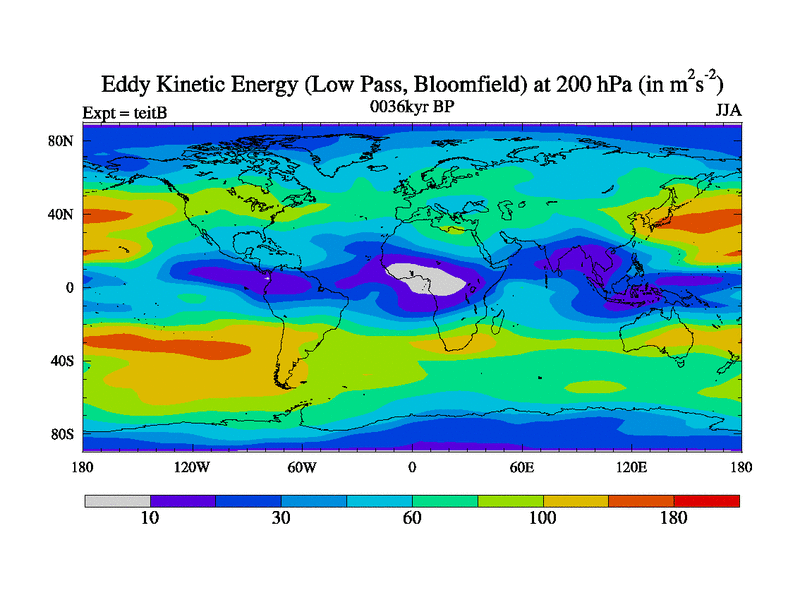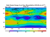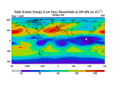 Low Pass Eddy Kinetic Energy at 200 hPa