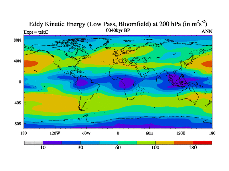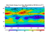 Low Pass Eddy Kinetic Energy at 200 hPa