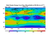 Low Pass Eddy Kinetic Energy at 200 hPa