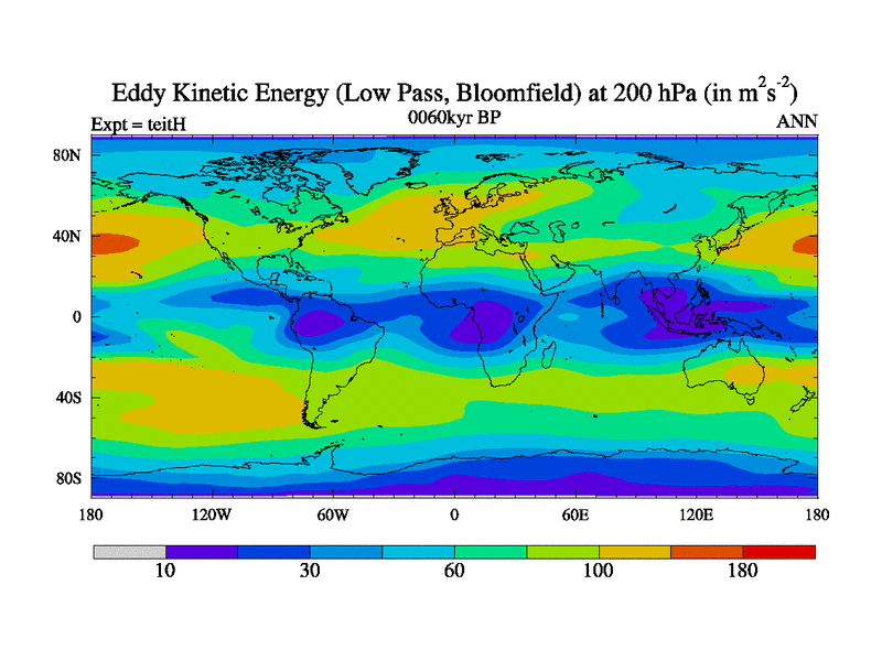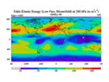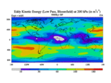 Low Pass Eddy Kinetic Energy at 200 hPa