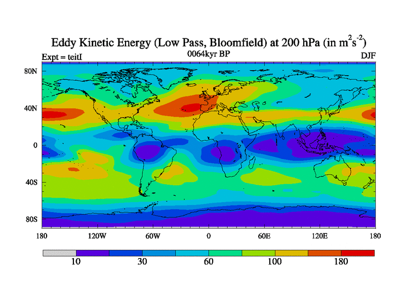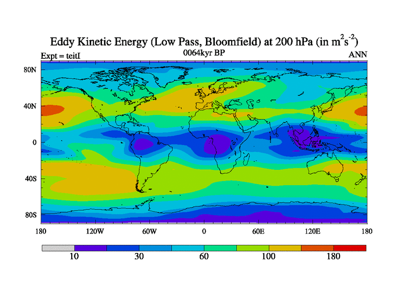 Low Pass Eddy Kinetic Energy at 200 hPa
