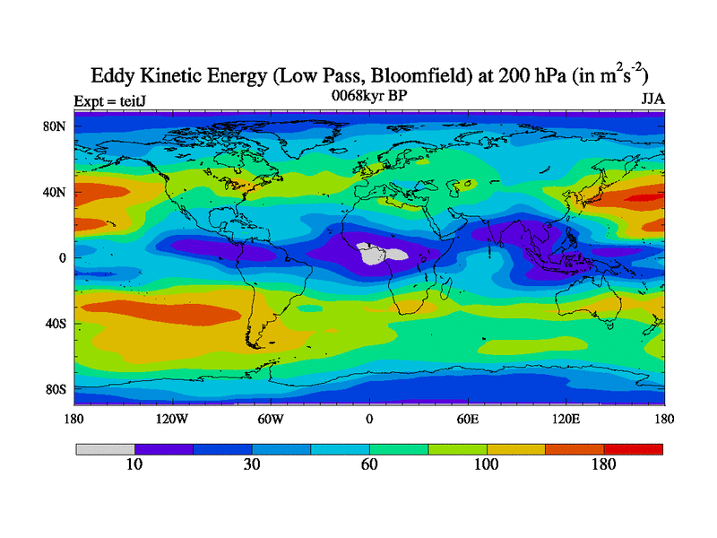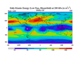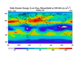 Low Pass Eddy Kinetic Energy at 200 hPa