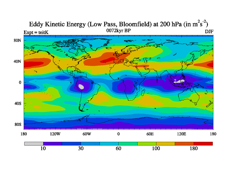 Low Pass Eddy Kinetic Energy at 200 hPa