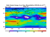 Low Pass Eddy Kinetic Energy at 200 hPa