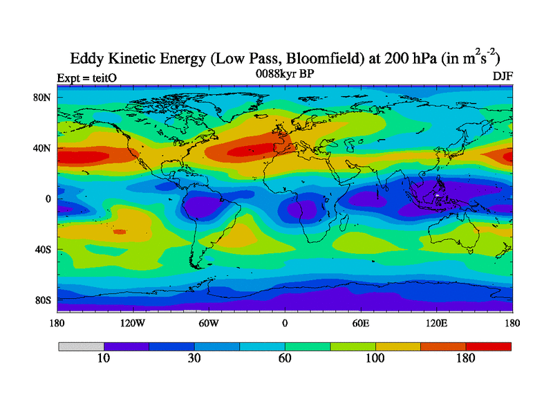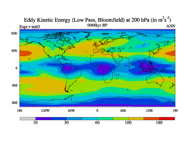 Low Pass Eddy Kinetic Energy at 200 hPa