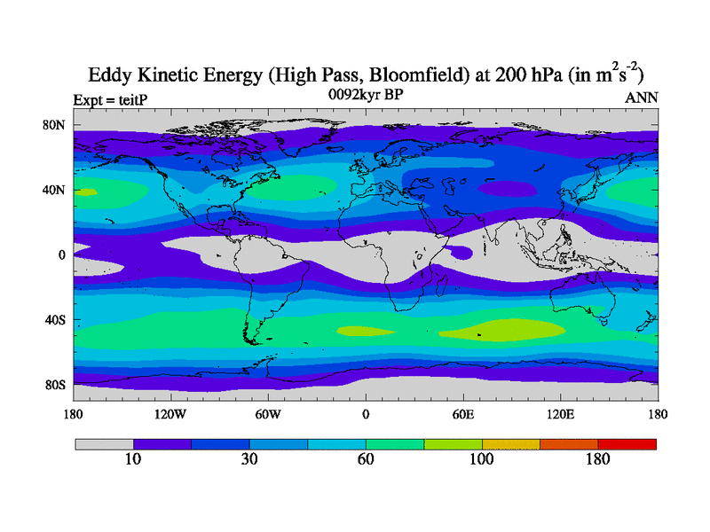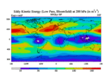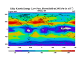 Low Pass Eddy Kinetic Energy at 200 hPa