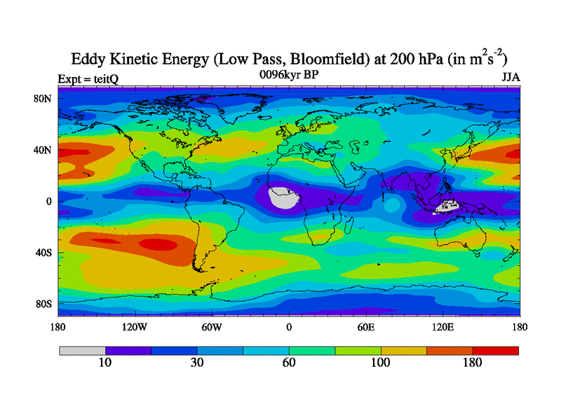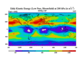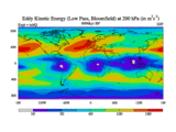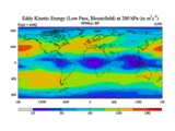 Low Pass Eddy Kinetic Energy at 200 hPa