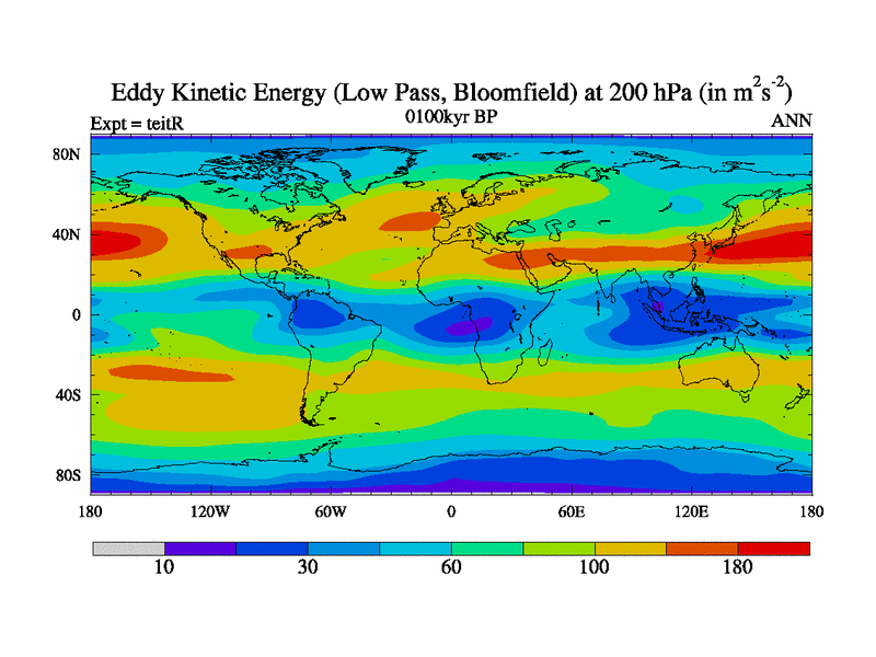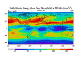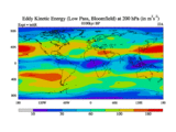 Low Pass Eddy Kinetic Energy at 200 hPa