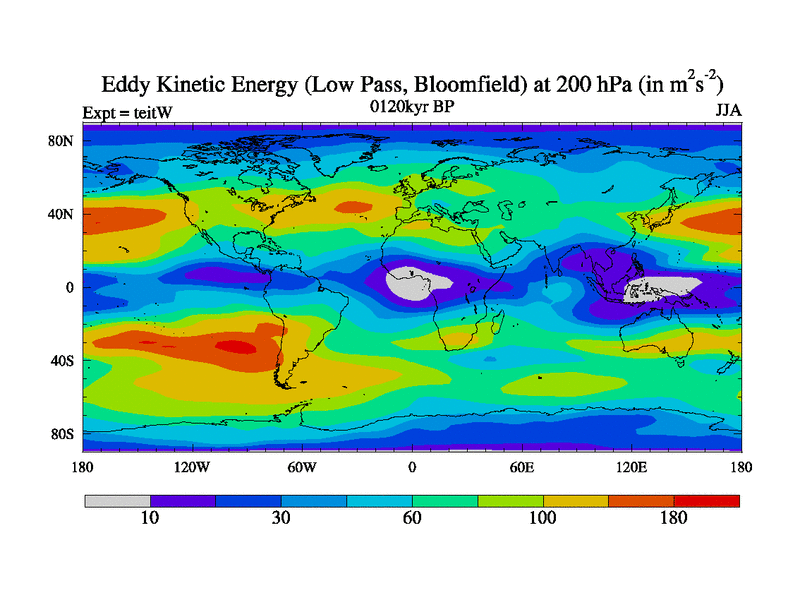 Low Pass Eddy Kinetic Energy at 200 hPa
